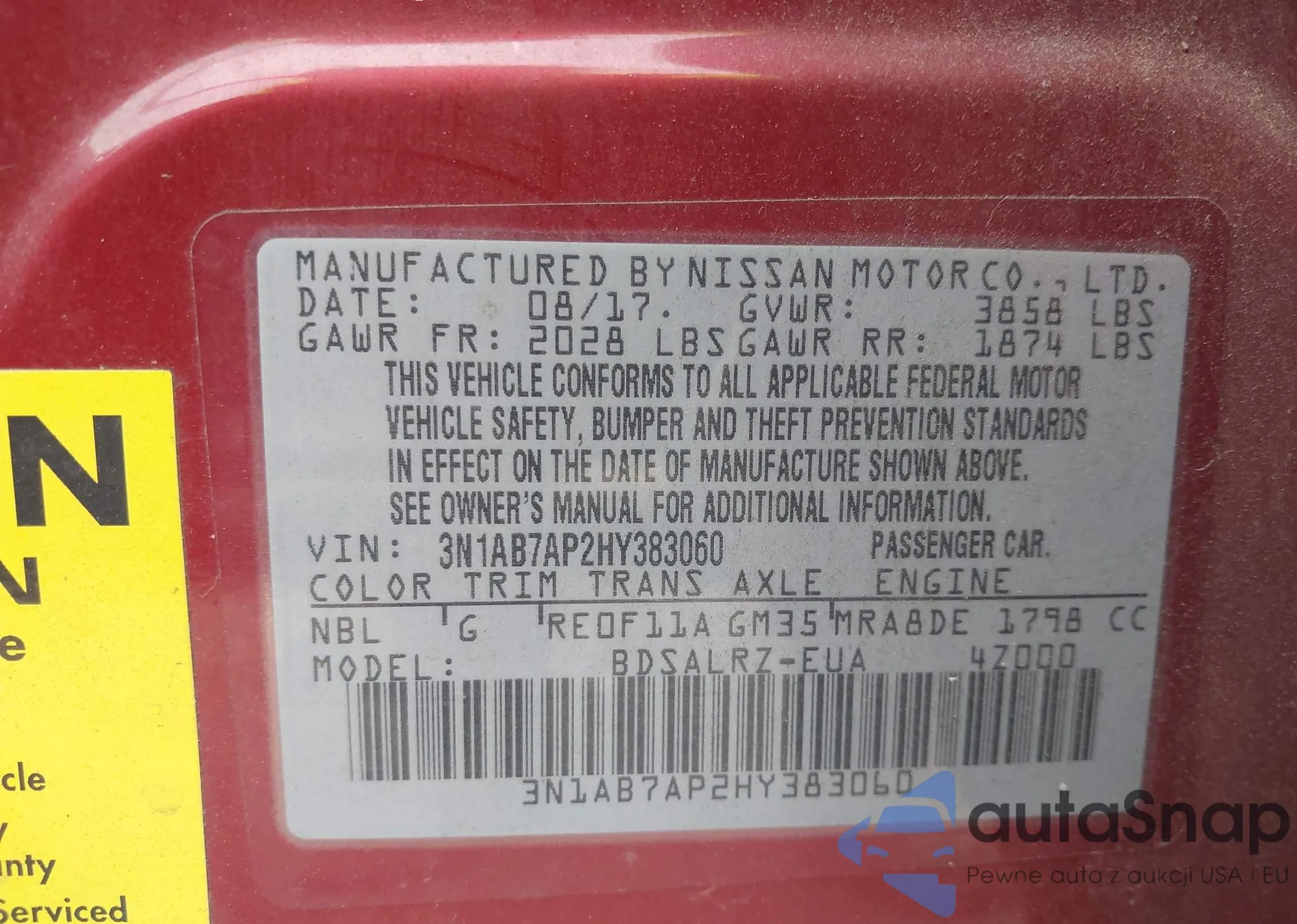 • VIN 3N1AB7AP2HY383060