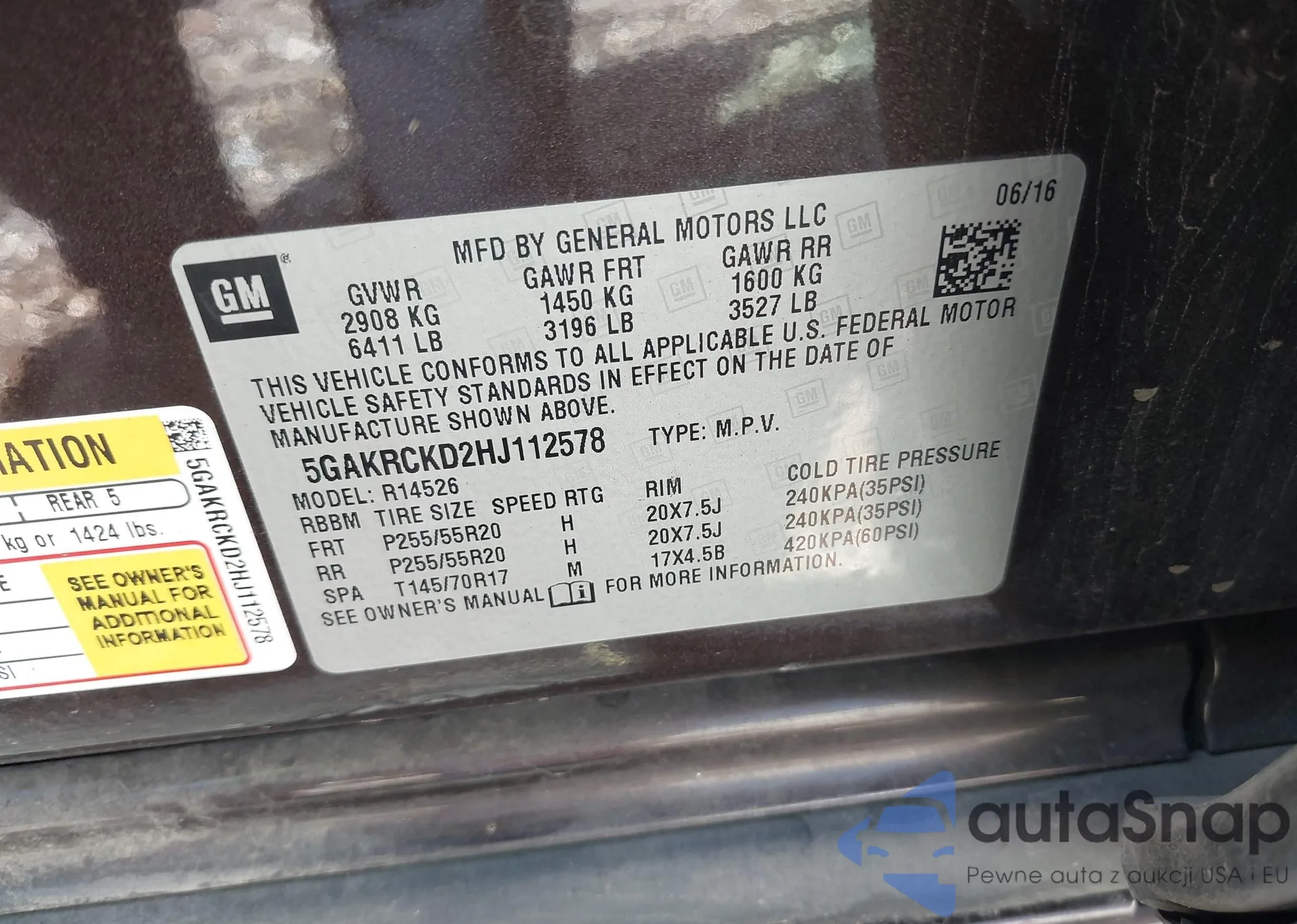 • VIN 5GAKRCKD2HJ112578