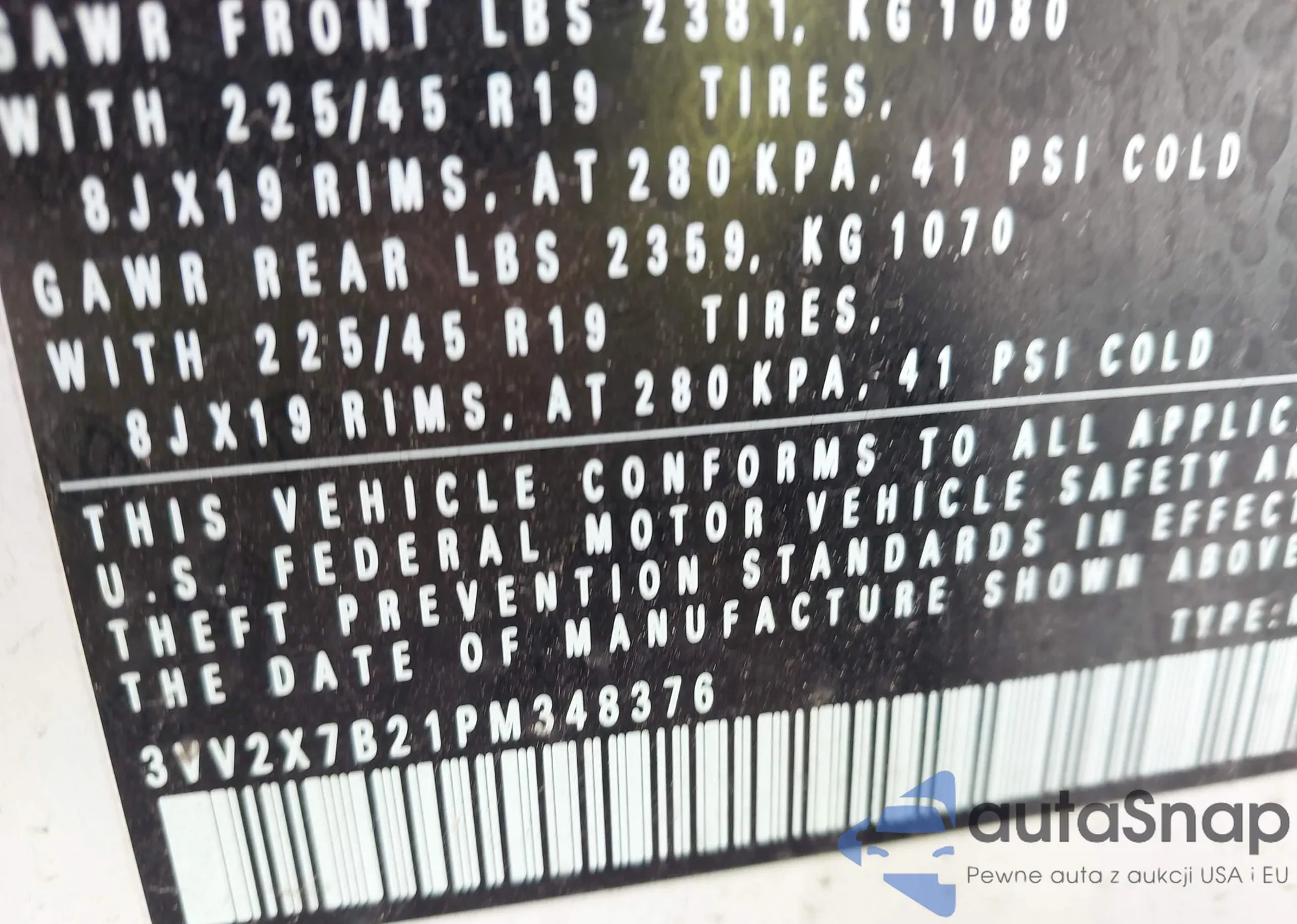 • VIN 3VV2X7B21PM348376