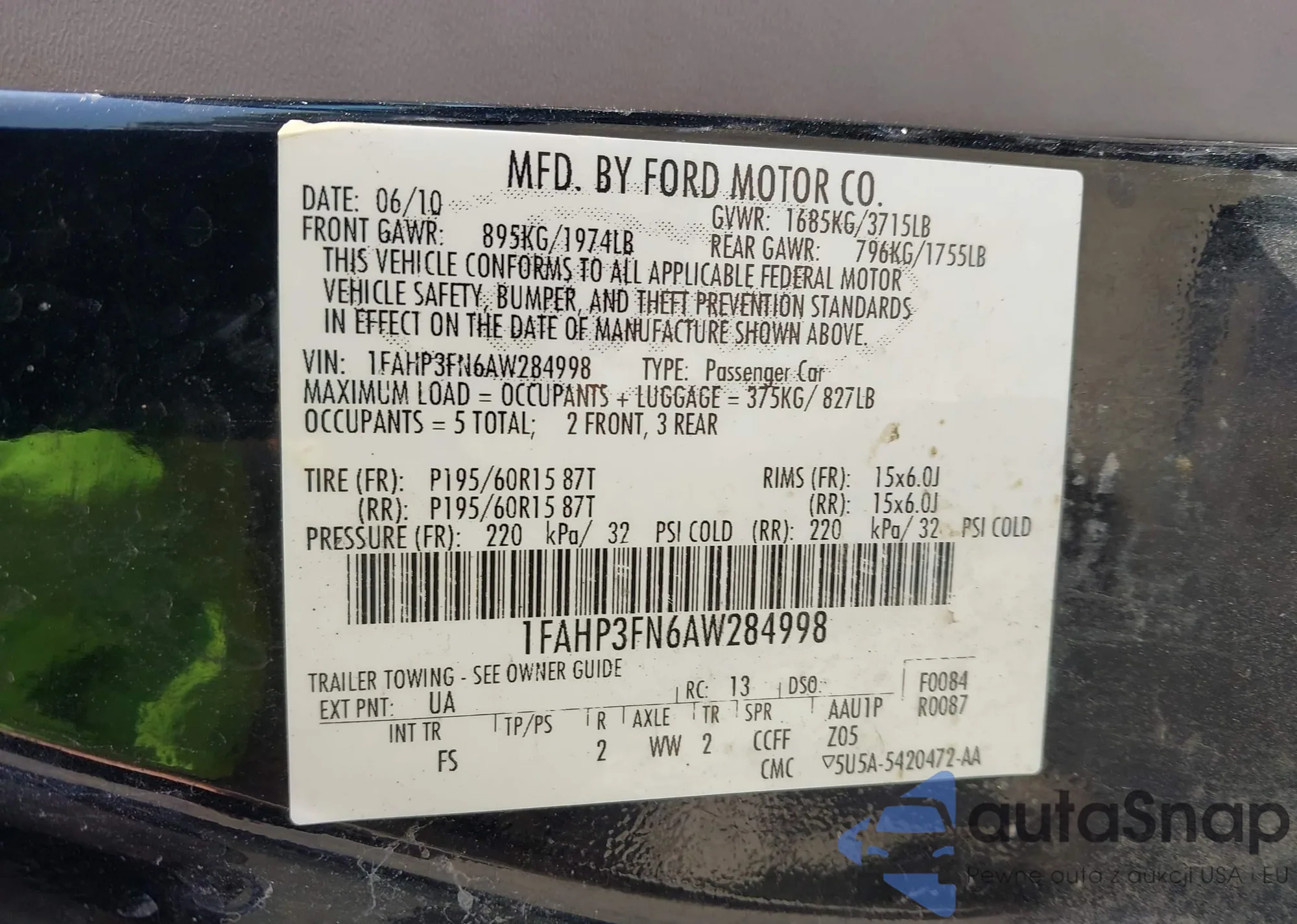 • VIN 1FAHP3FN6AW284998