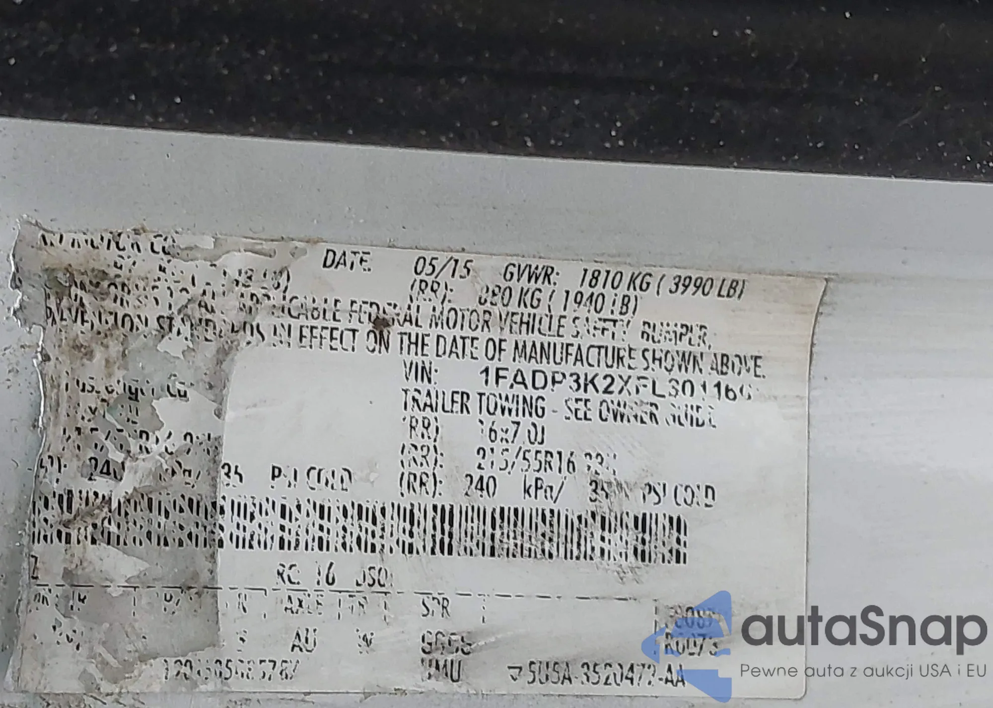 LOT: 42250835 VIN: 1FADP3K2XFL301160