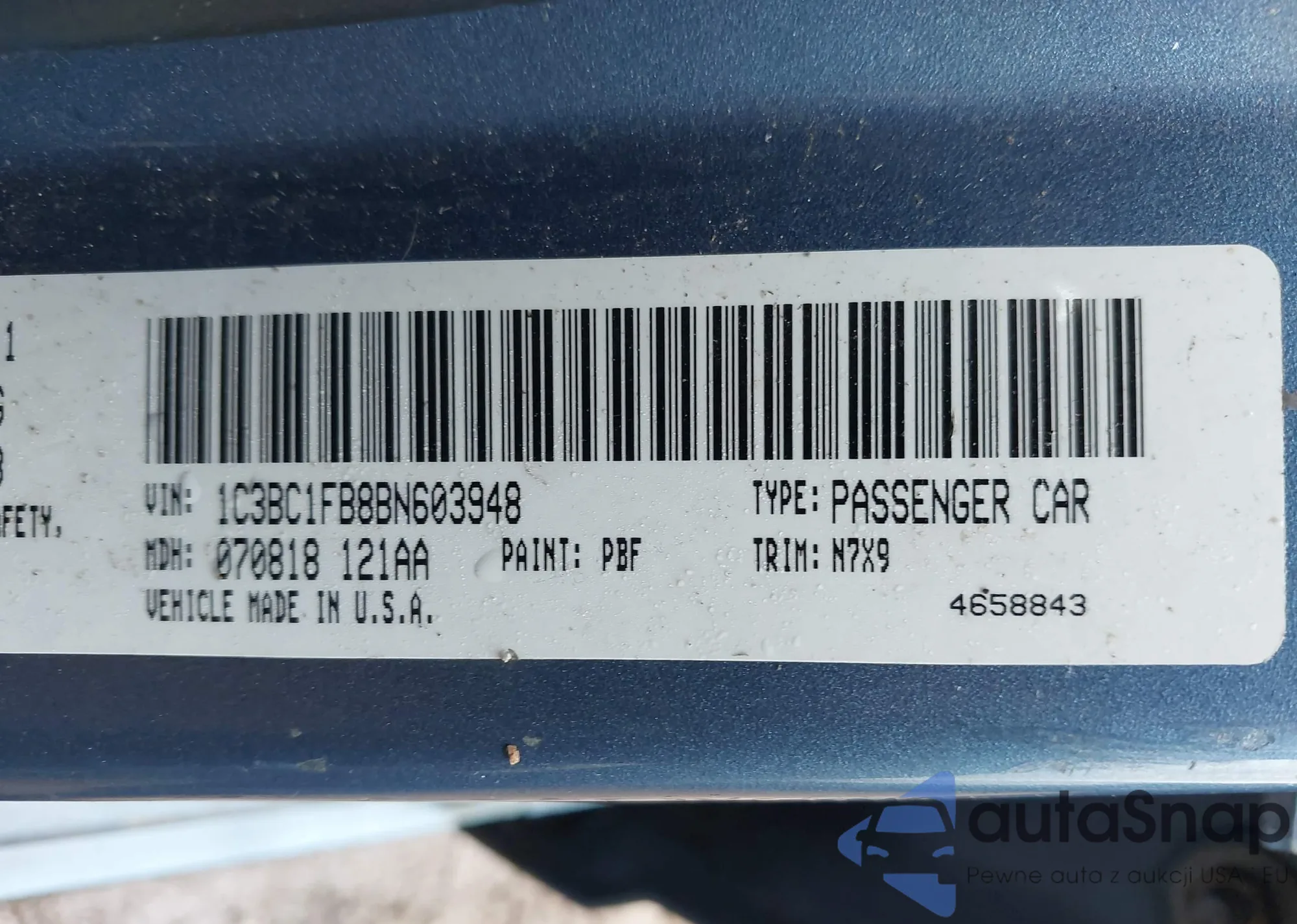 LOT: 42306513 VIN: 1C3BC1FB8BN603948