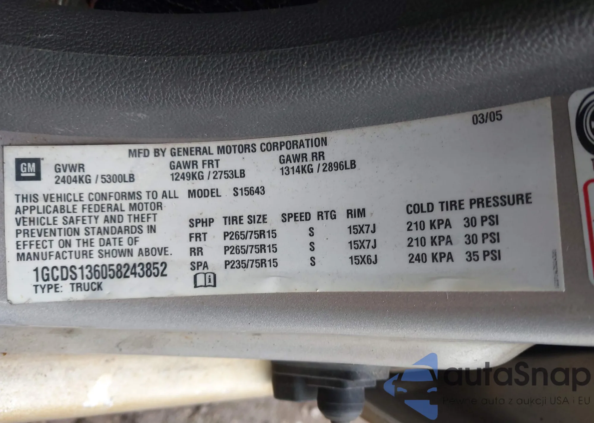 LOT: 42302630 VIN: 3GYFNBE32ES534430