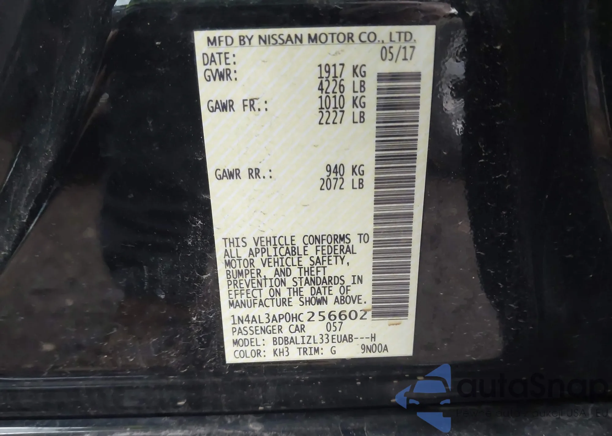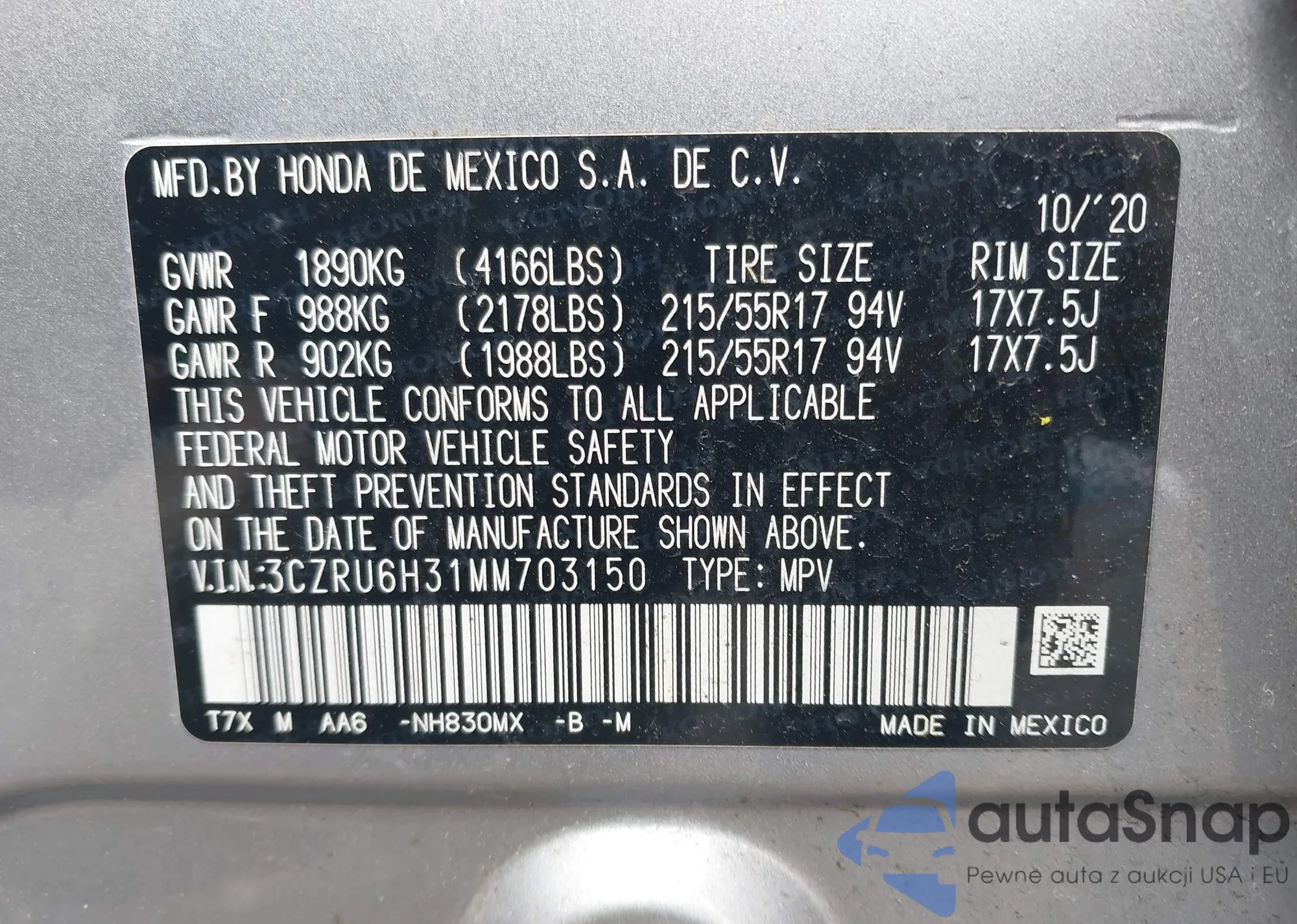 • VIN 3CZRU6H31MM703150