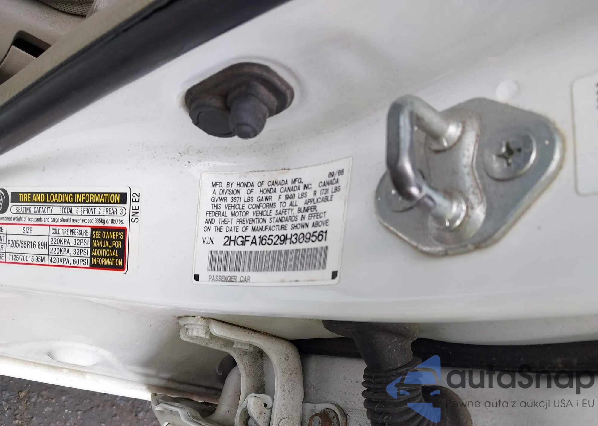 LOT: 42258208 VIN: 2HGFA16529H309561