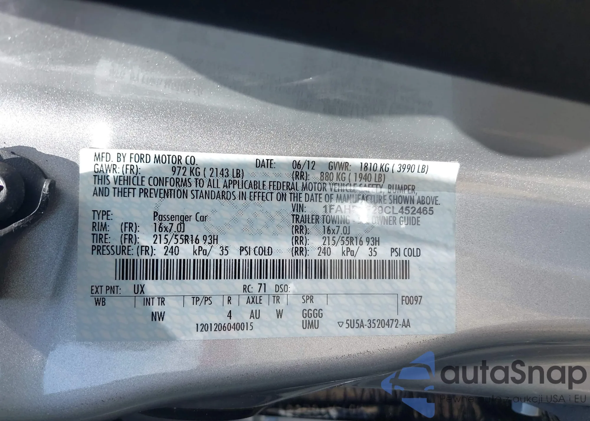 2012 Ford Focus Se z USA, uszkodzony, nr VIN 1FAHP3F29CL452465