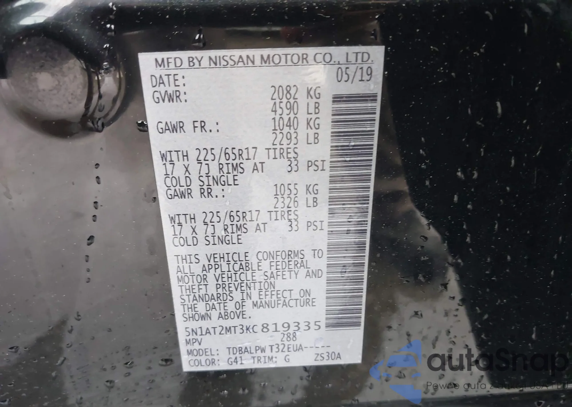 • VIN 4T1DAACK9SU518259