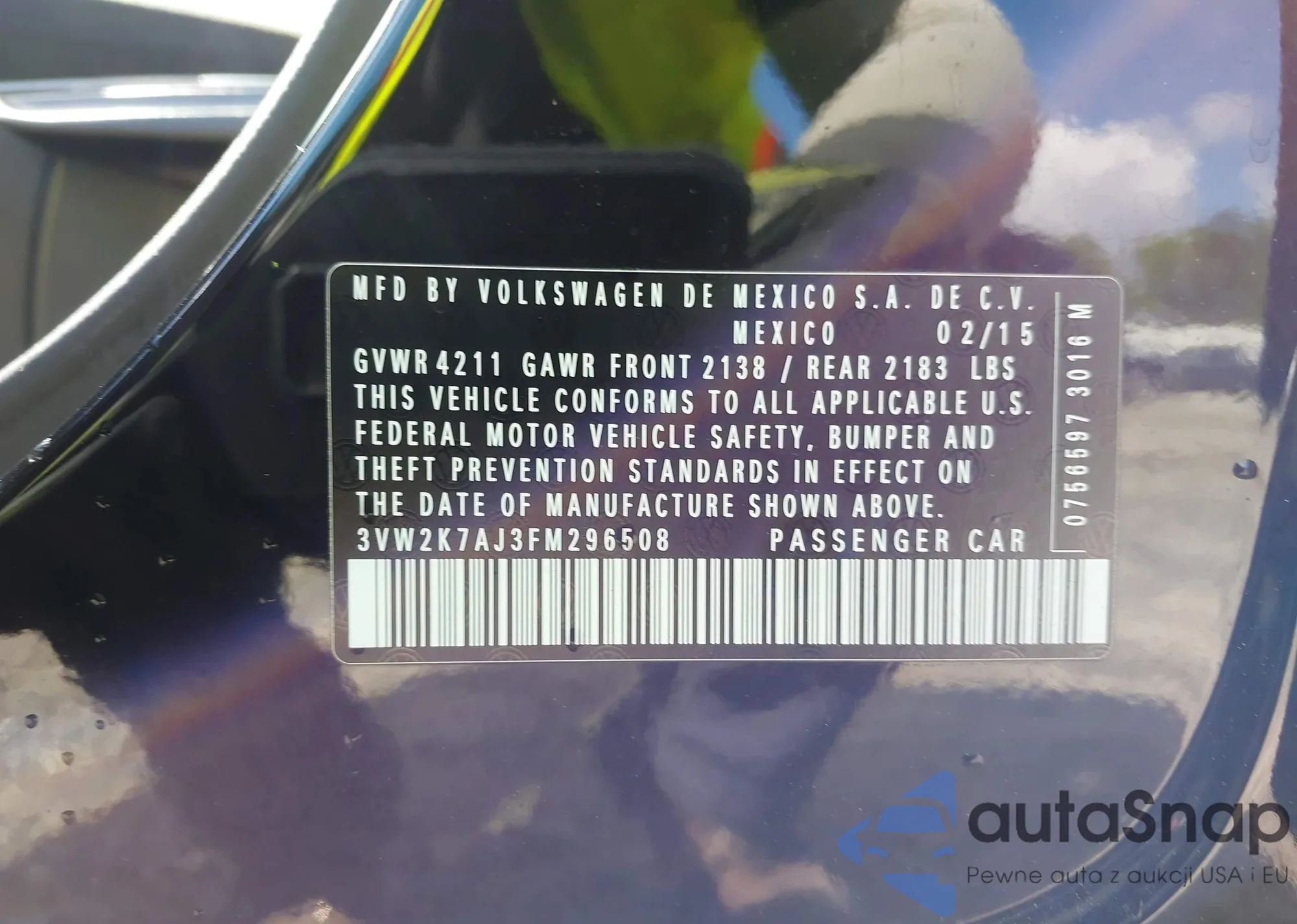 • VIN 3VW2K7AJ3FM296508