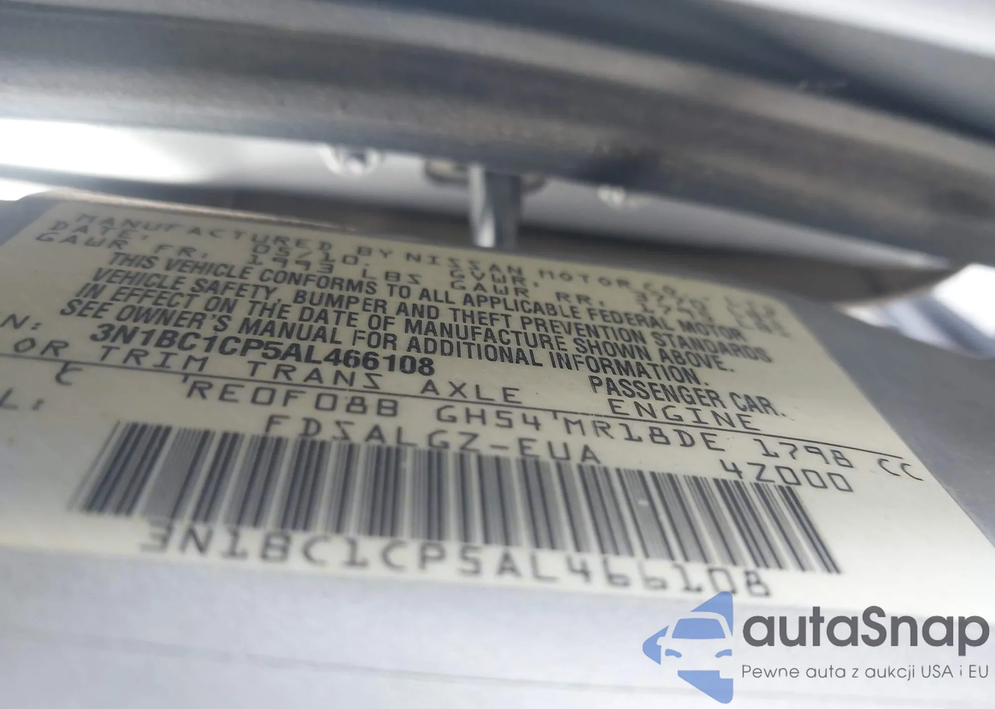 • VIN 3N1BC1CP5AL466A08