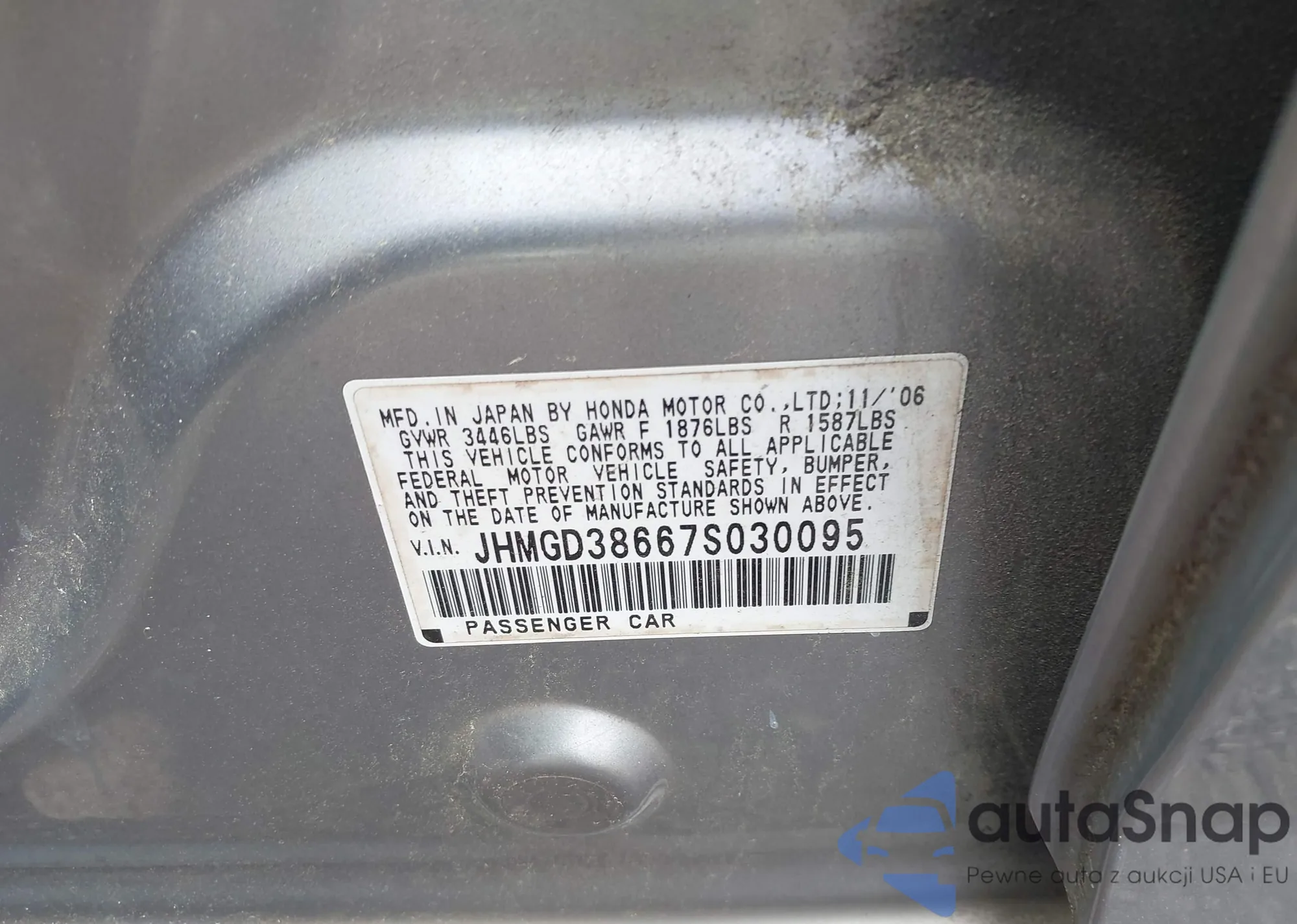• VIN JHMGD38667S030095