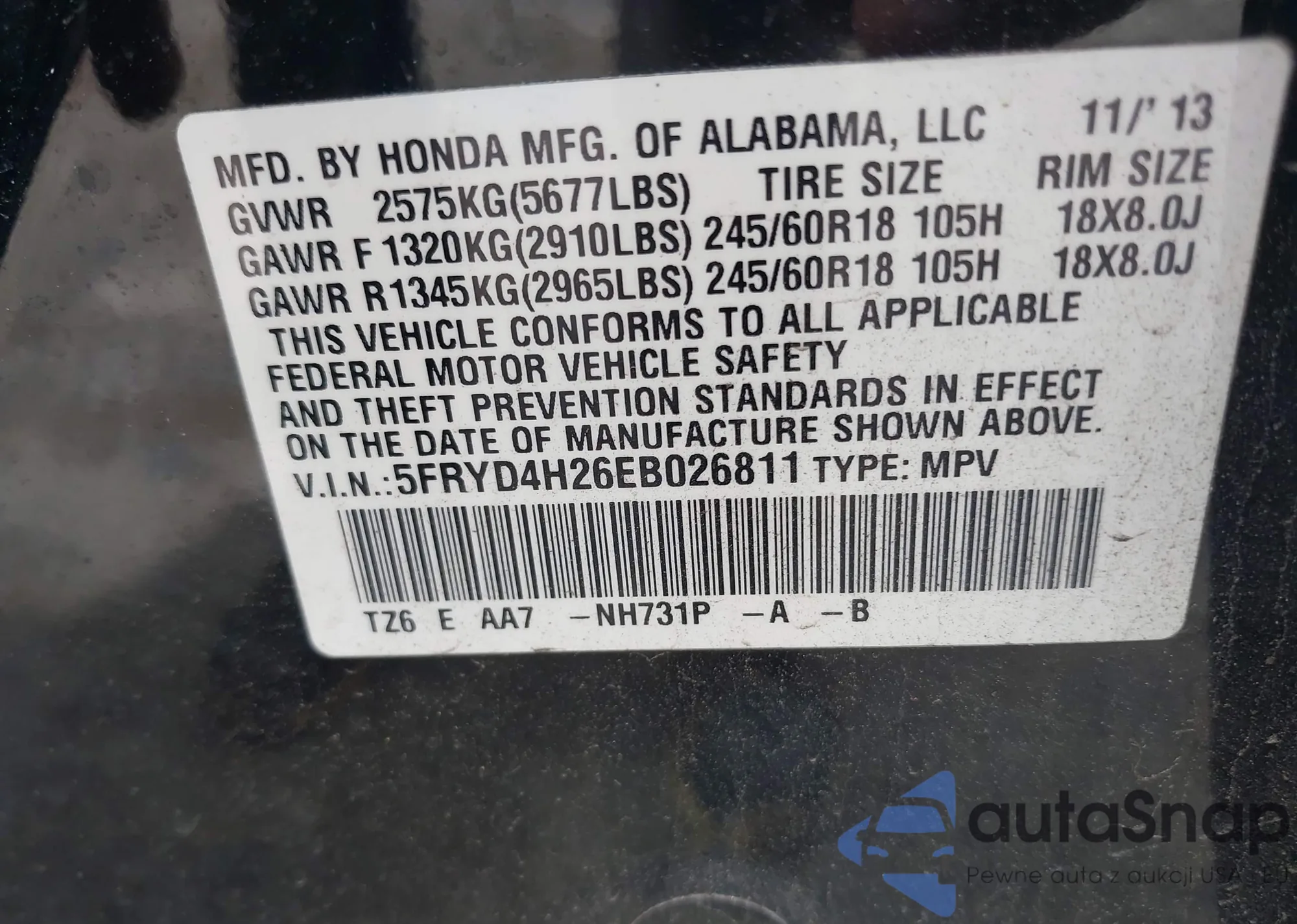 • VIN 5FRYD4H26EB026811