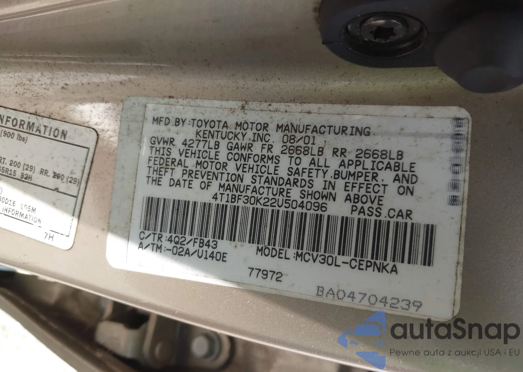 LOT: 42260100 VIN: JTDJT923285196433