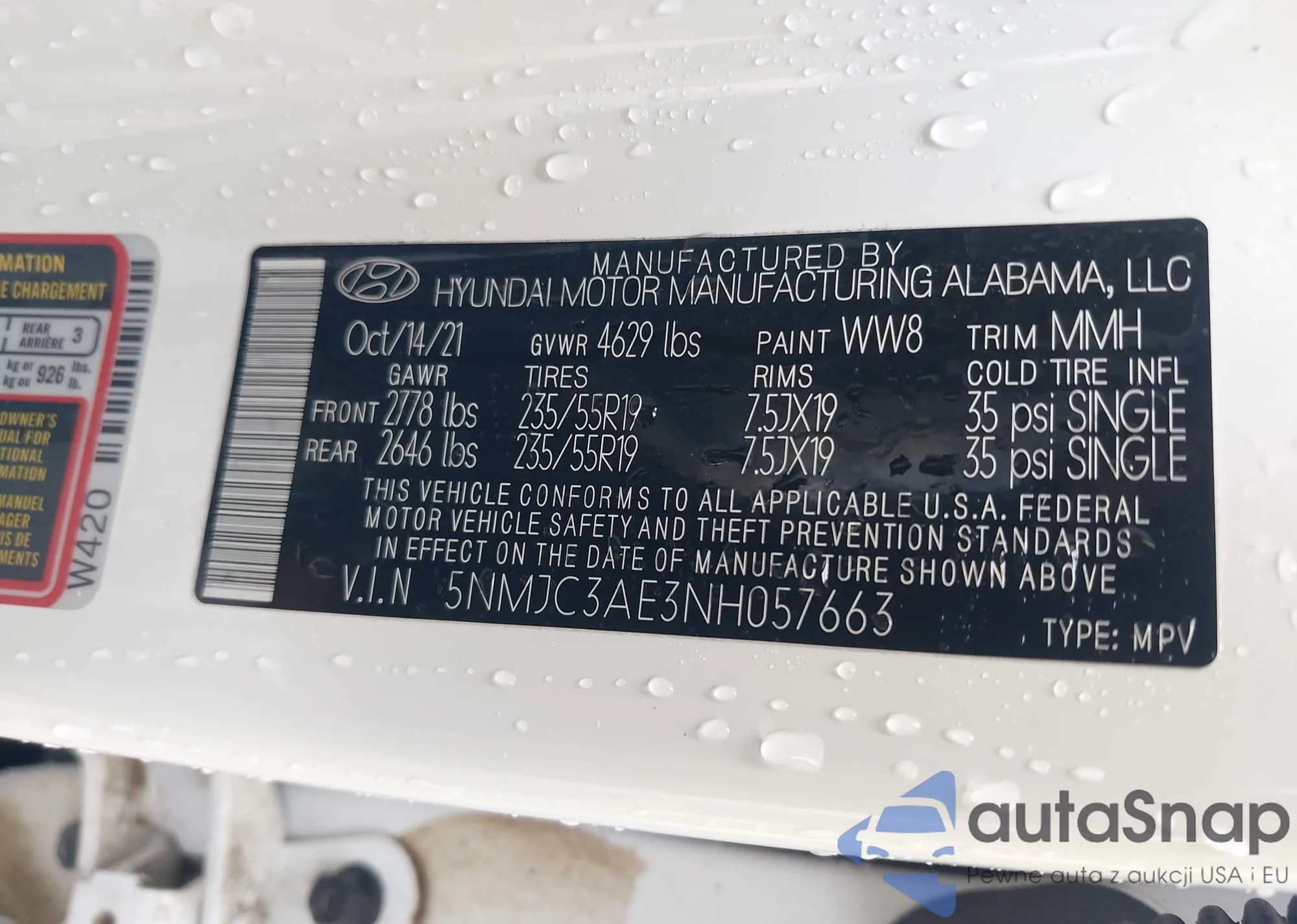 • VIN 5NMJC3AE3NH057663
