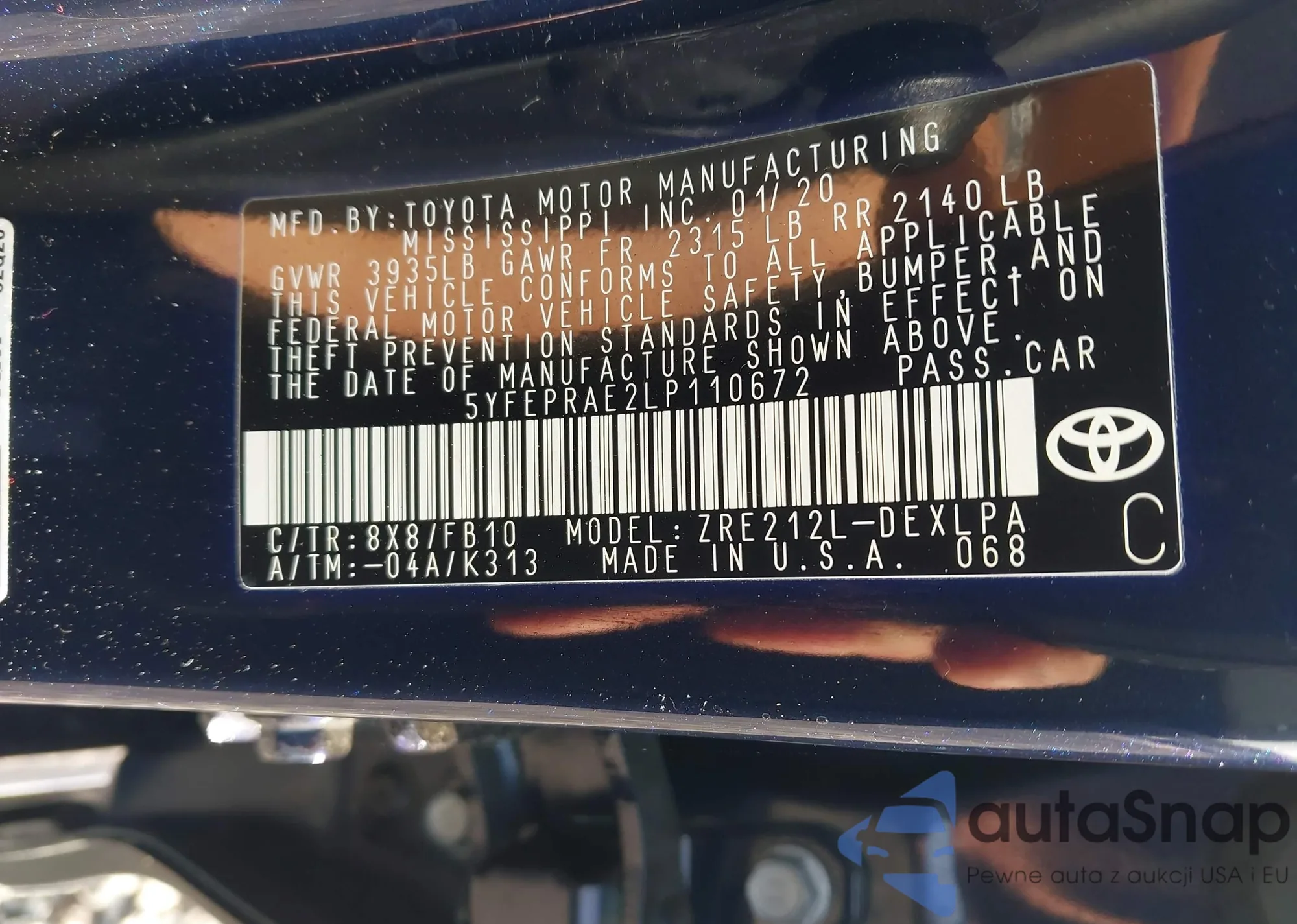 LOT: 42082868 VIN: 5YFEPRAE2LP110672