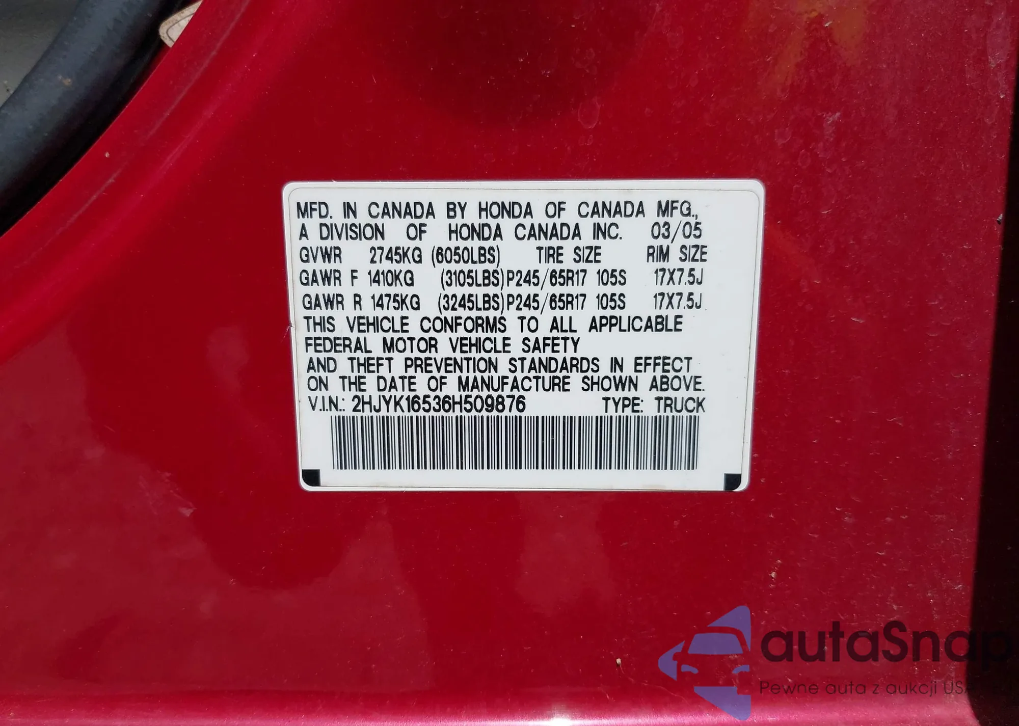 • VIN 2HJYK16536H509876