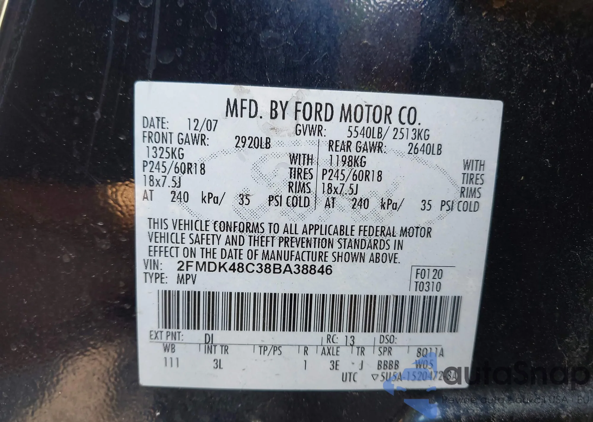 • VIN 2FMDK48C38BA38846