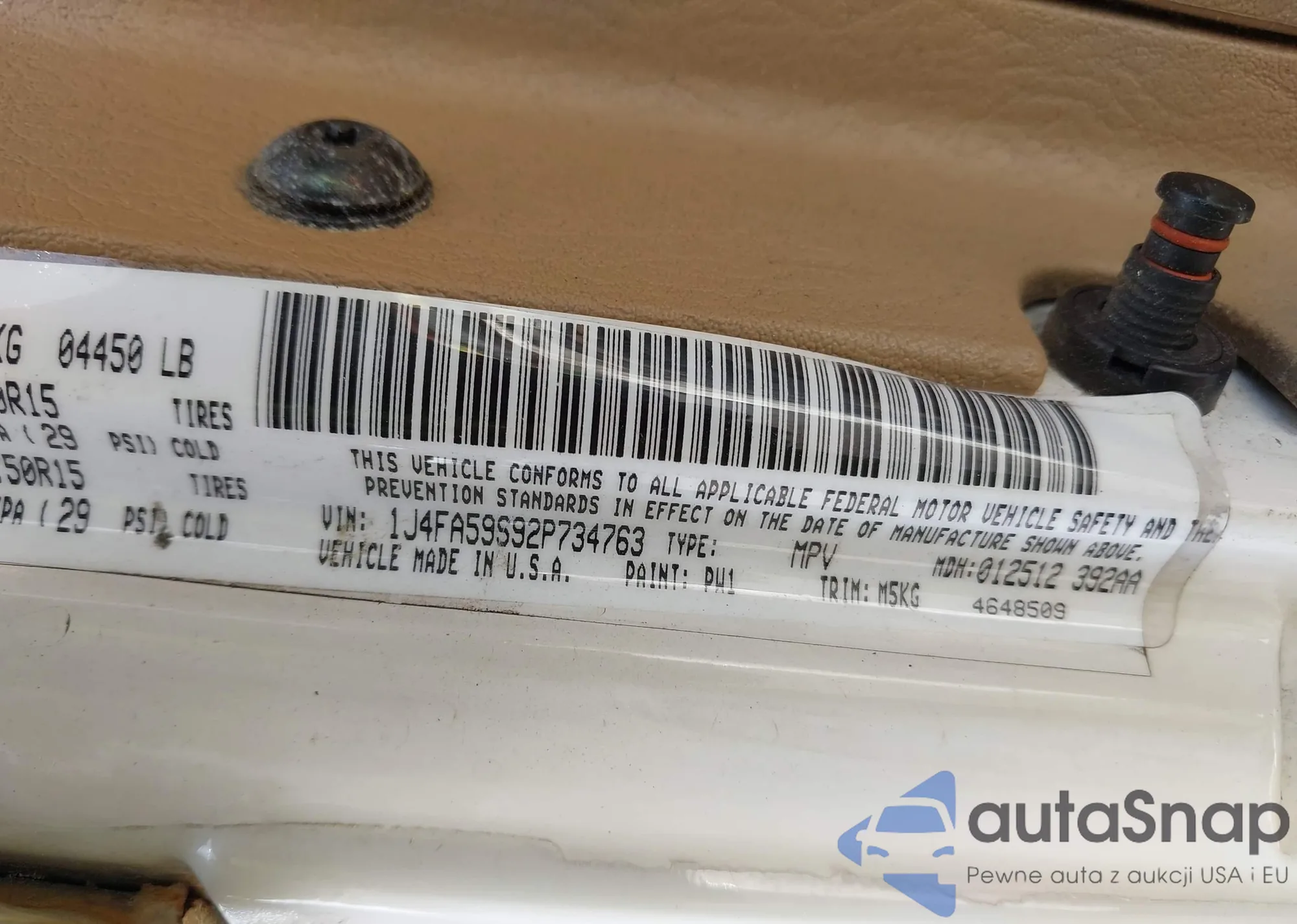 LOT: 42411004 VIN: 1J4FA59S92P734763