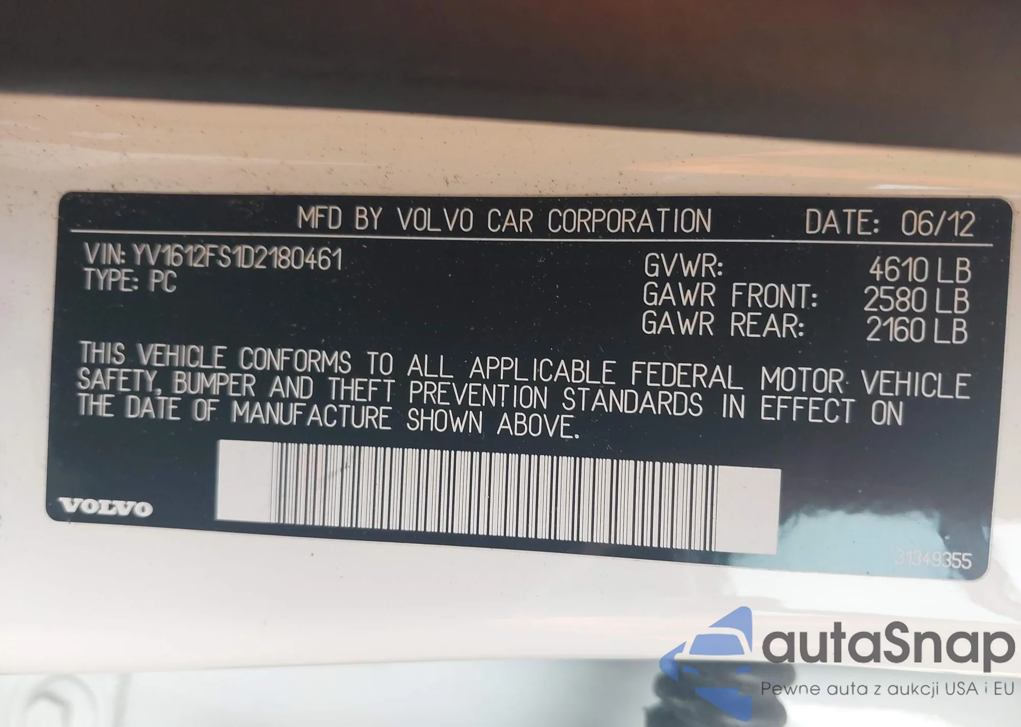 LOT: 42498316 VIN: YV1612FS1D2180461