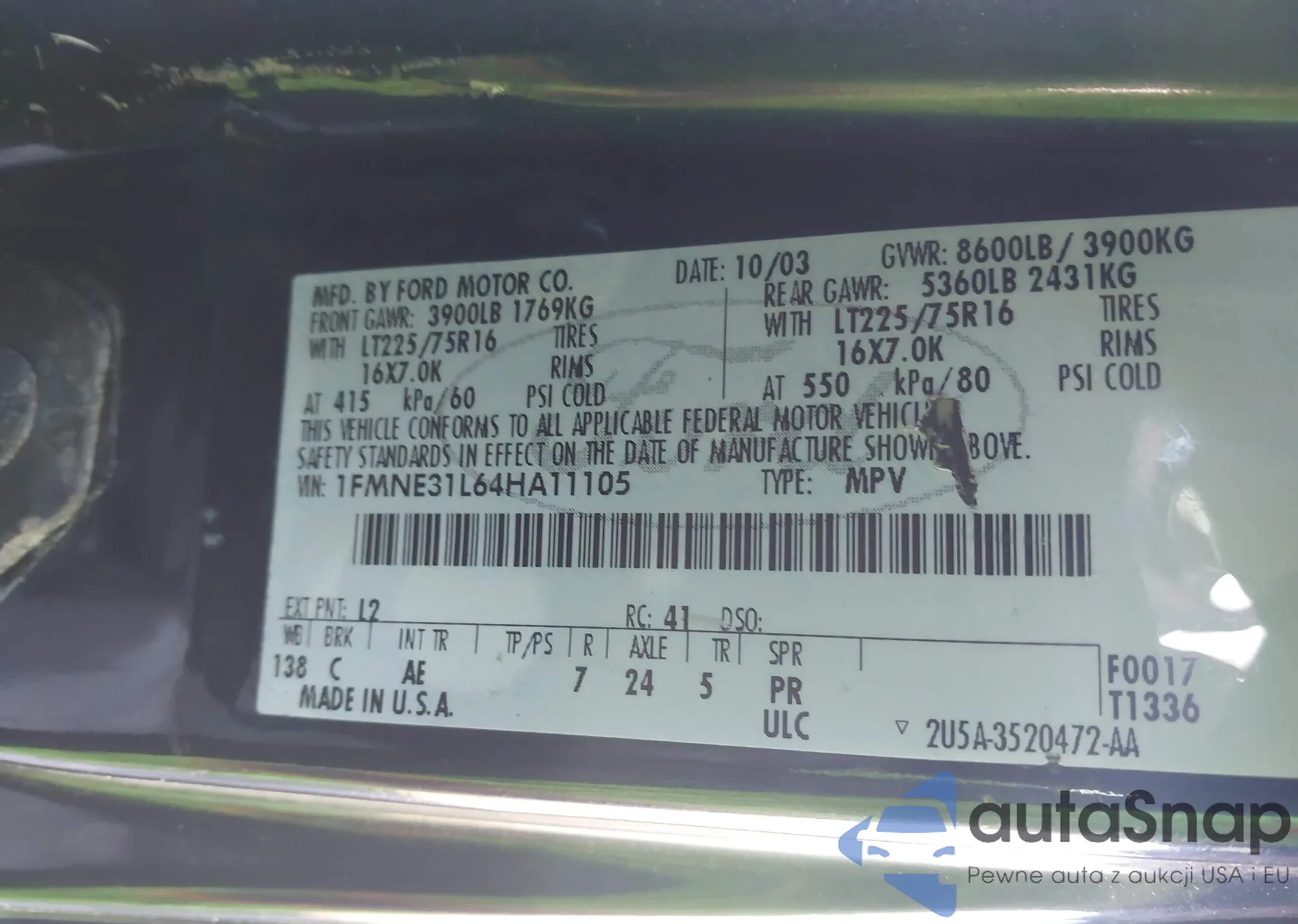 • VIN 1FMNE31L64HA11105