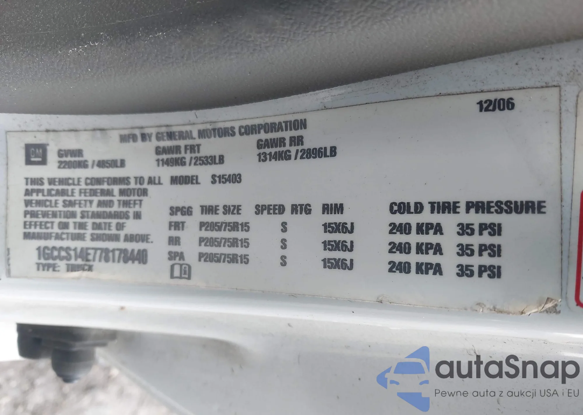 LOT: 42334965 VIN: 1GCCS14E778178440