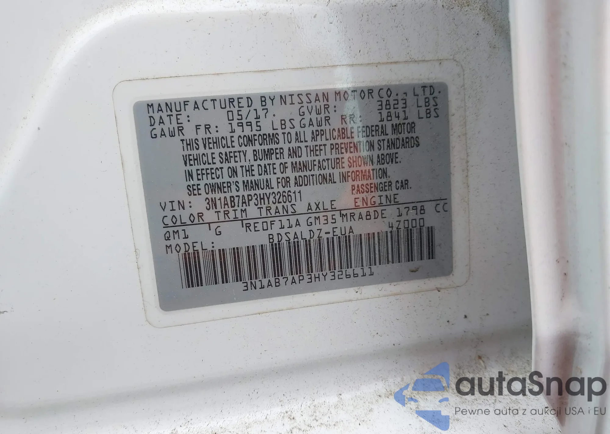 • VIN 3N1AB7AP3HY326611