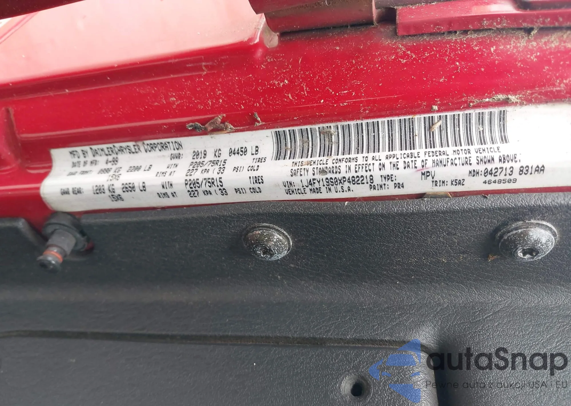 • VIN 1J4FY19S0XP482218