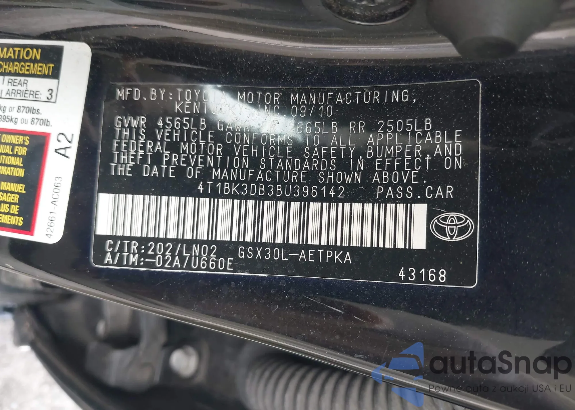 LOT: 42471829 VIN: 4T1BK3DB3BU396142