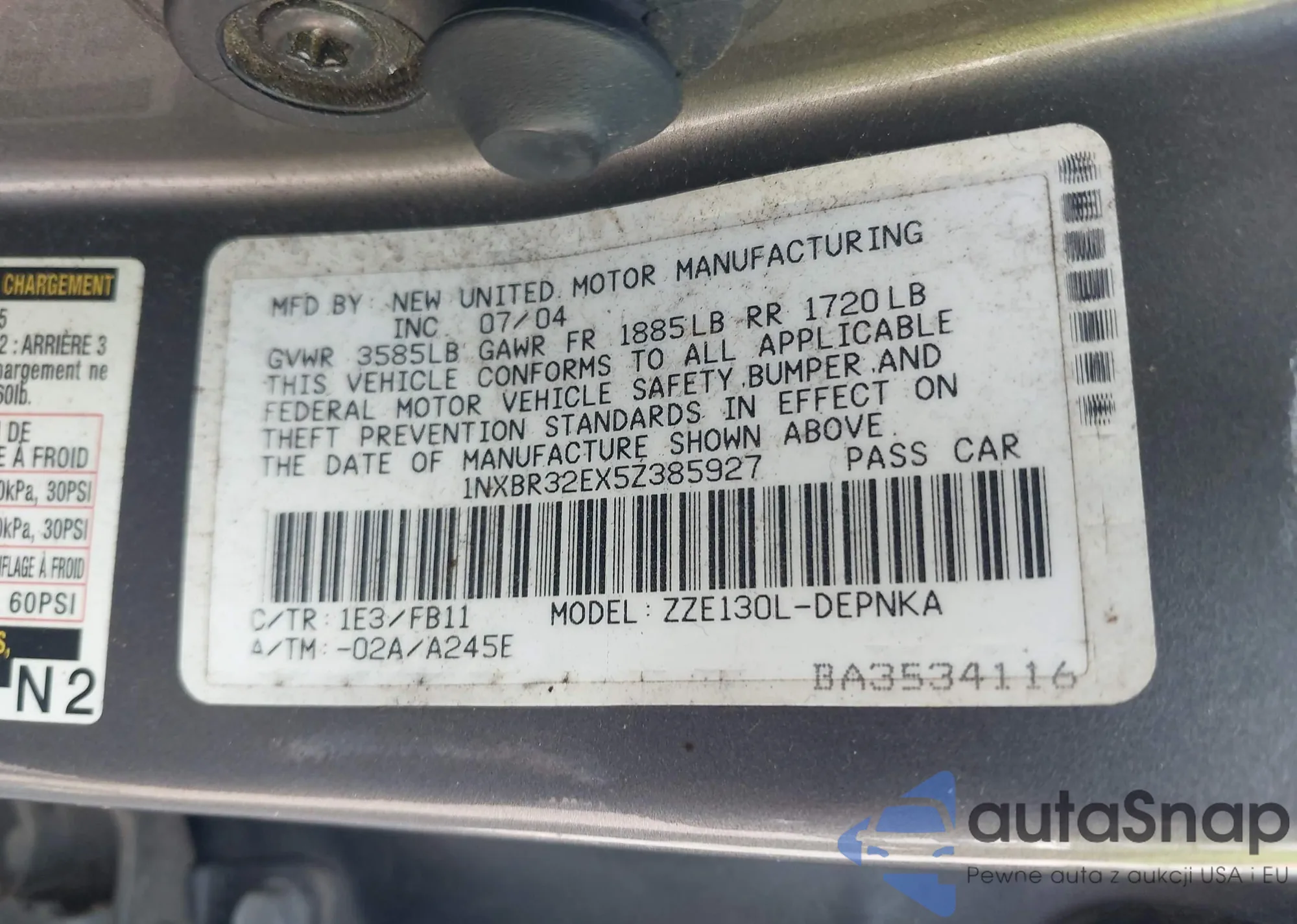 • VIN 1NXBR32EX5Z385927