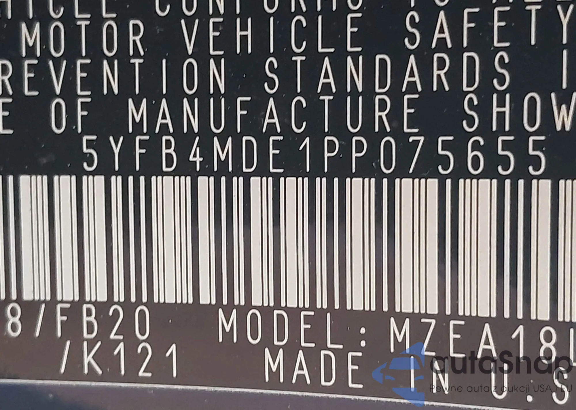 • VIN 5YFB4MDE1PP075655