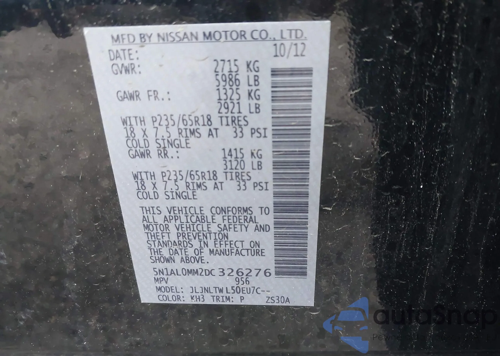 • VIN 5N1AL0MM2DC326276