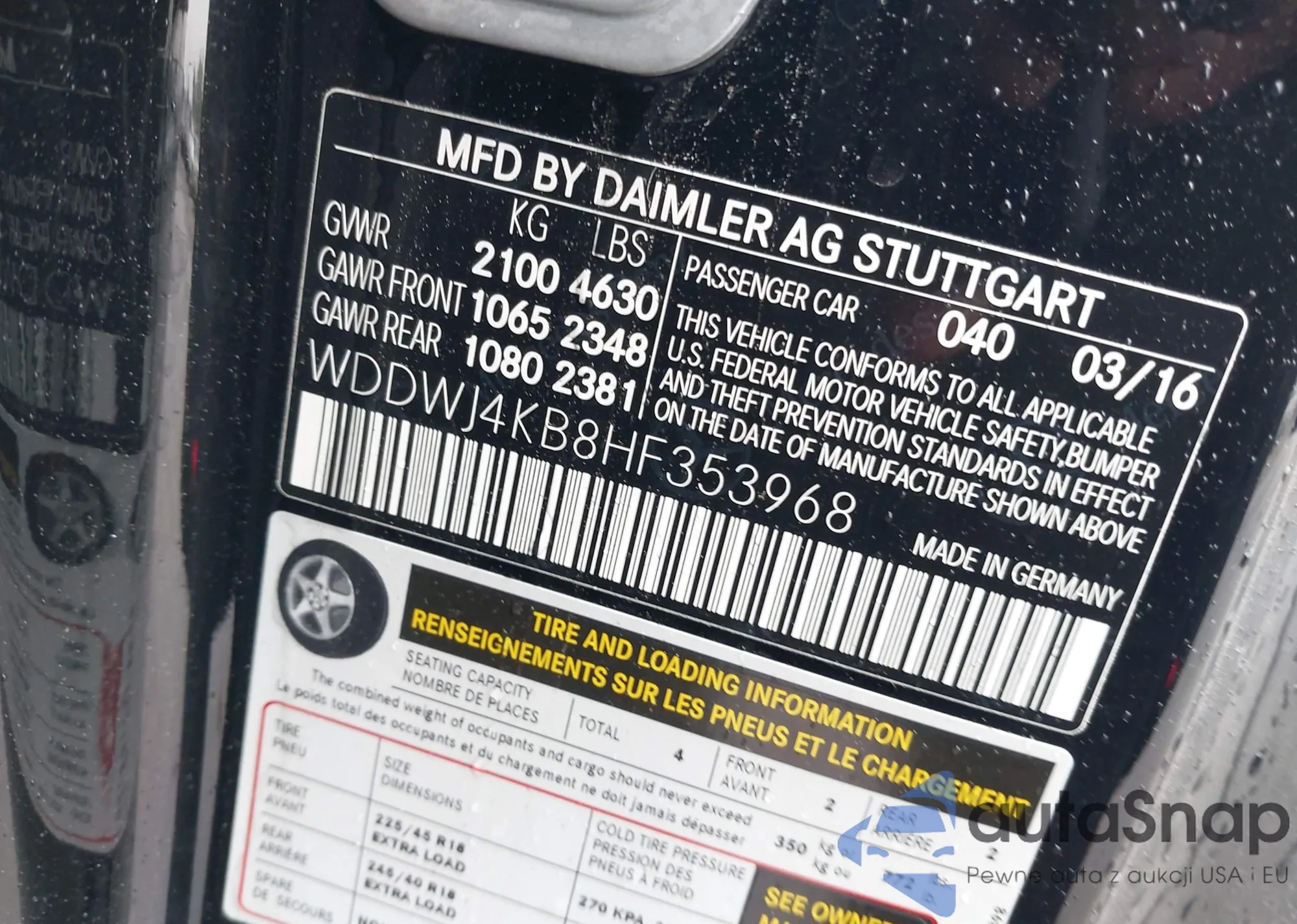 • VIN WDDWJ4KB8HF353968
