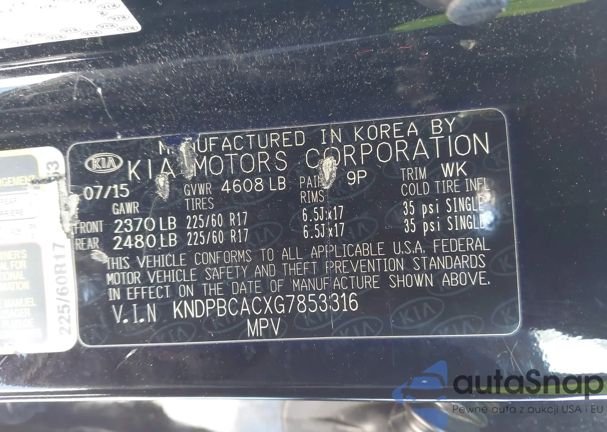 • VIN KNDPBCACXG7853316