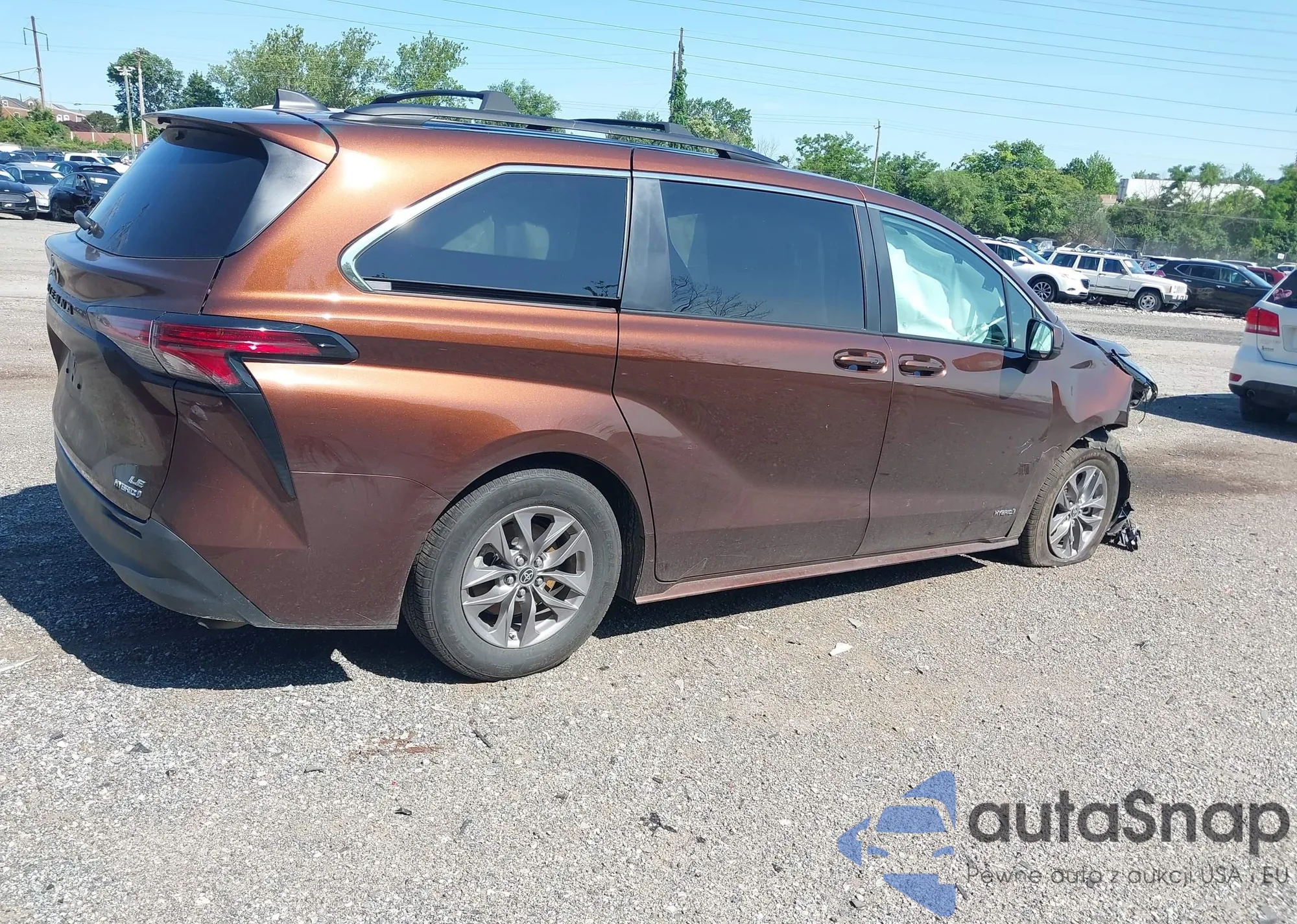 2021 Toyota Sienna Le z USA, uszkodzony, nr VIN 5TDKRKEC0MS062918