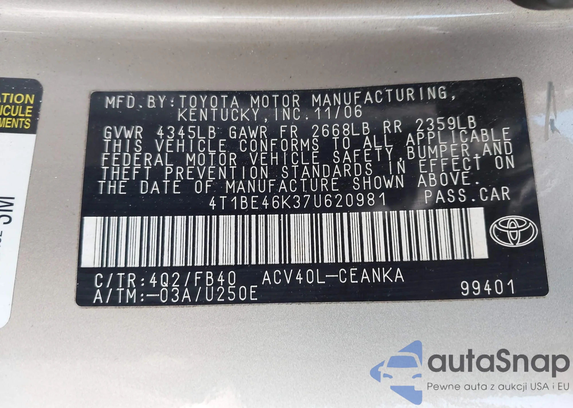 • VIN 4T1BE46K37U620981