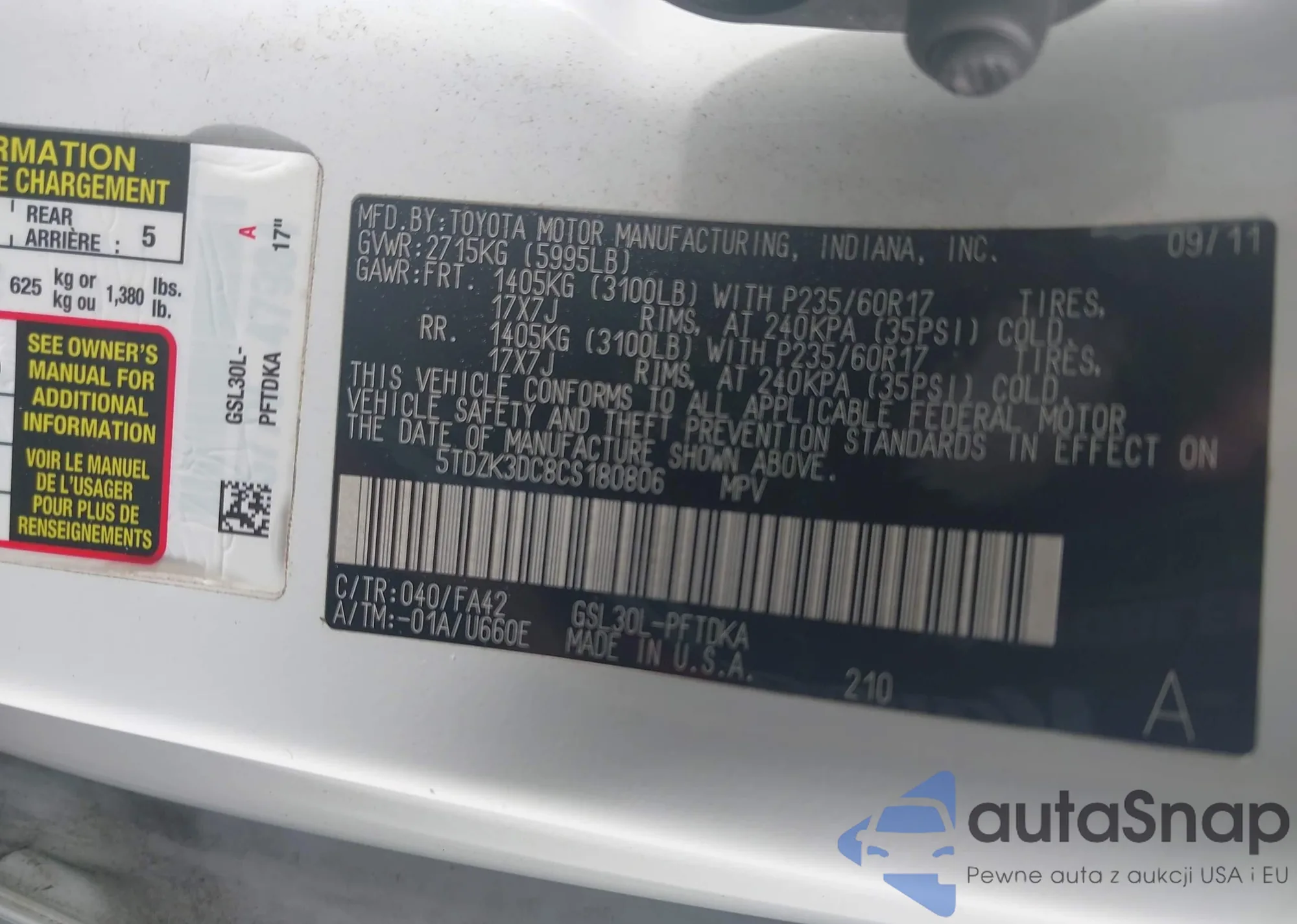 • VIN 5TDZK3DC8CS180806