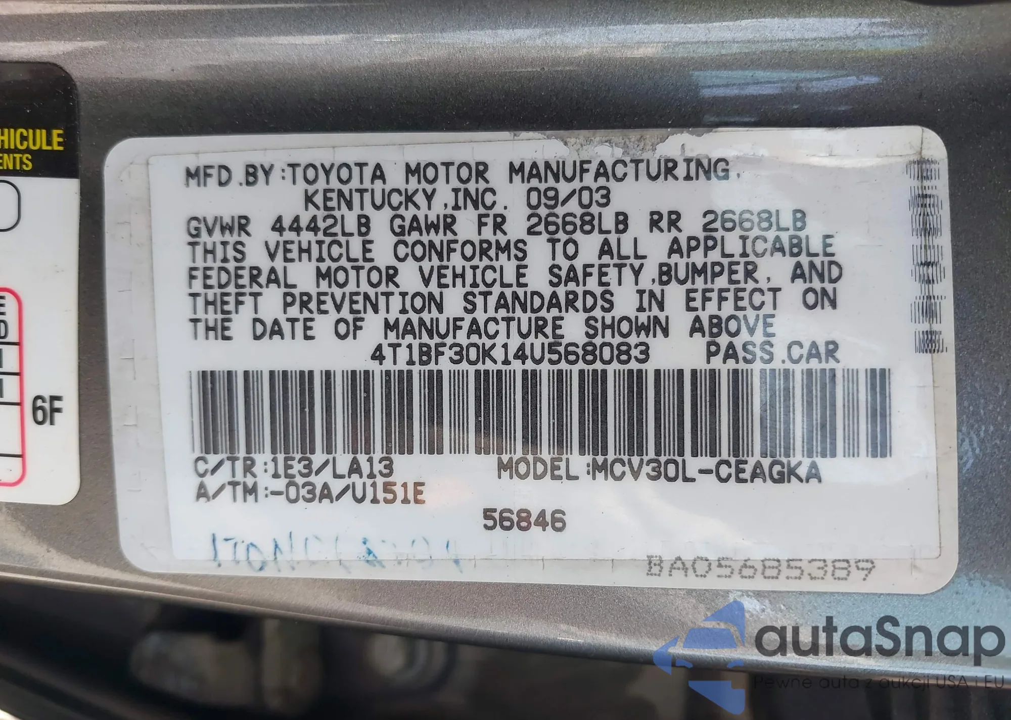 • VIN 4T4BF3EK0BR102446