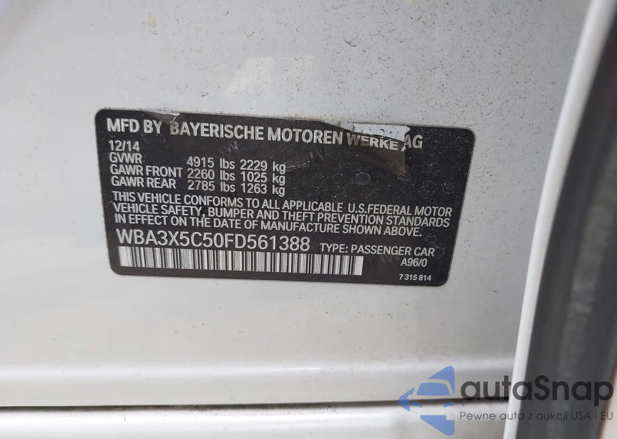 • VIN WBA4J1C53JBG76525