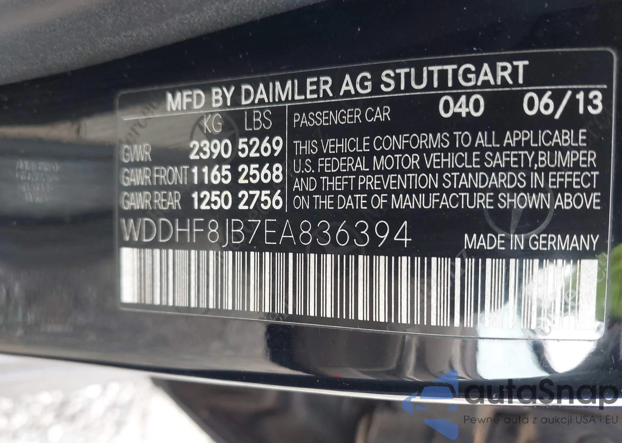 LOT: 42295915 VIN: WDDHF8JB7EA836394