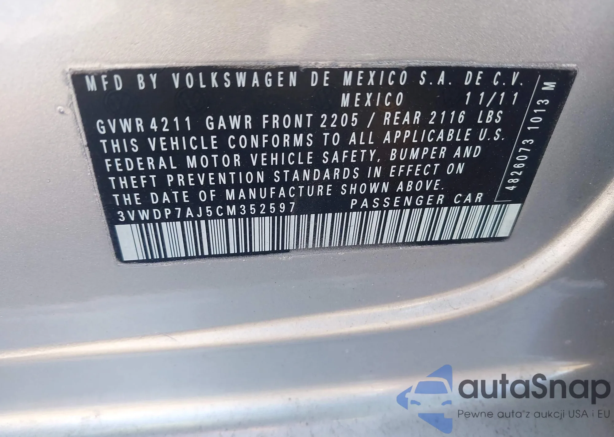 • VIN 3VWDP7AJ5CM352597
