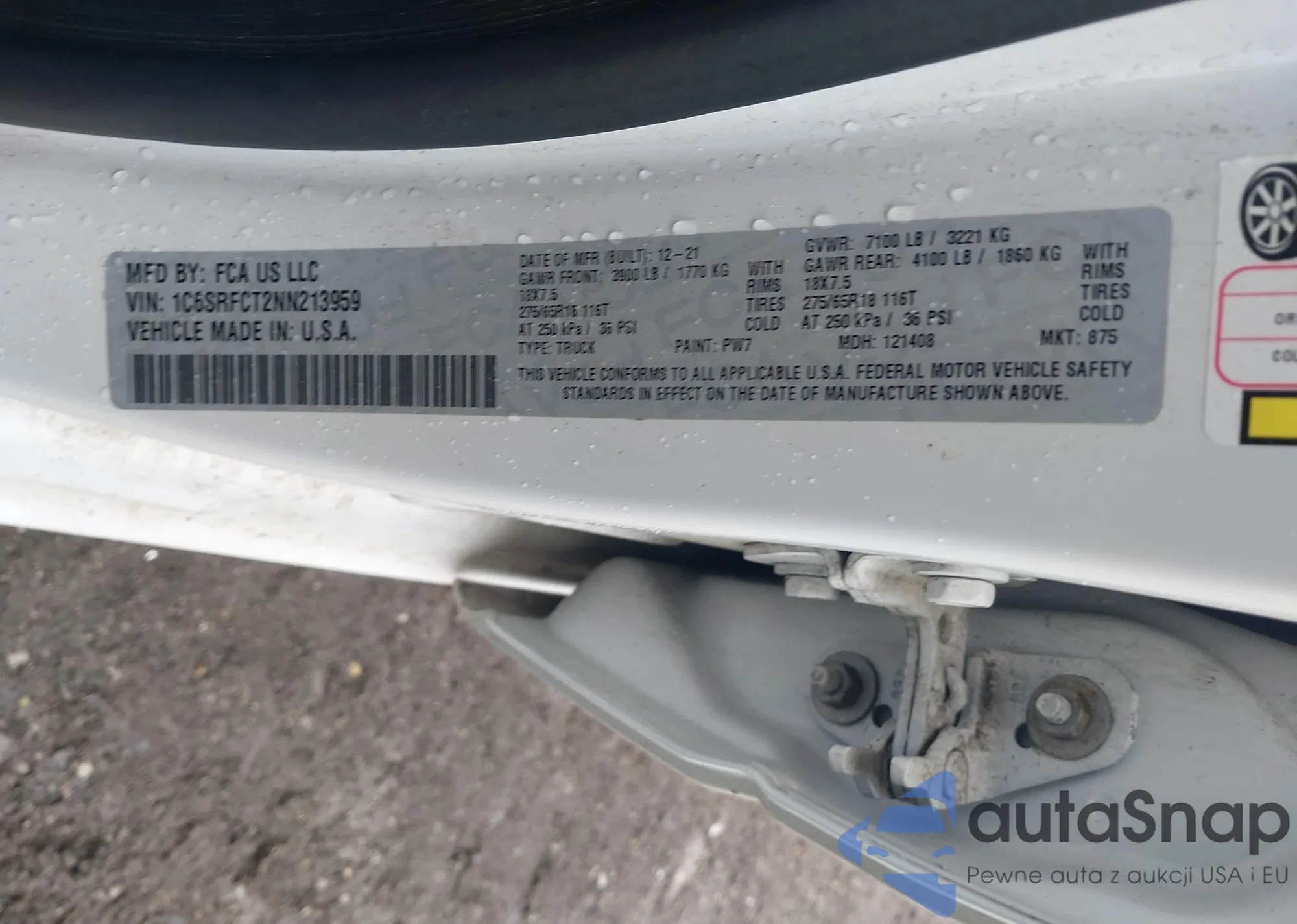 LOT: 42333437 VIN: 1C6SRFCT2NN213959