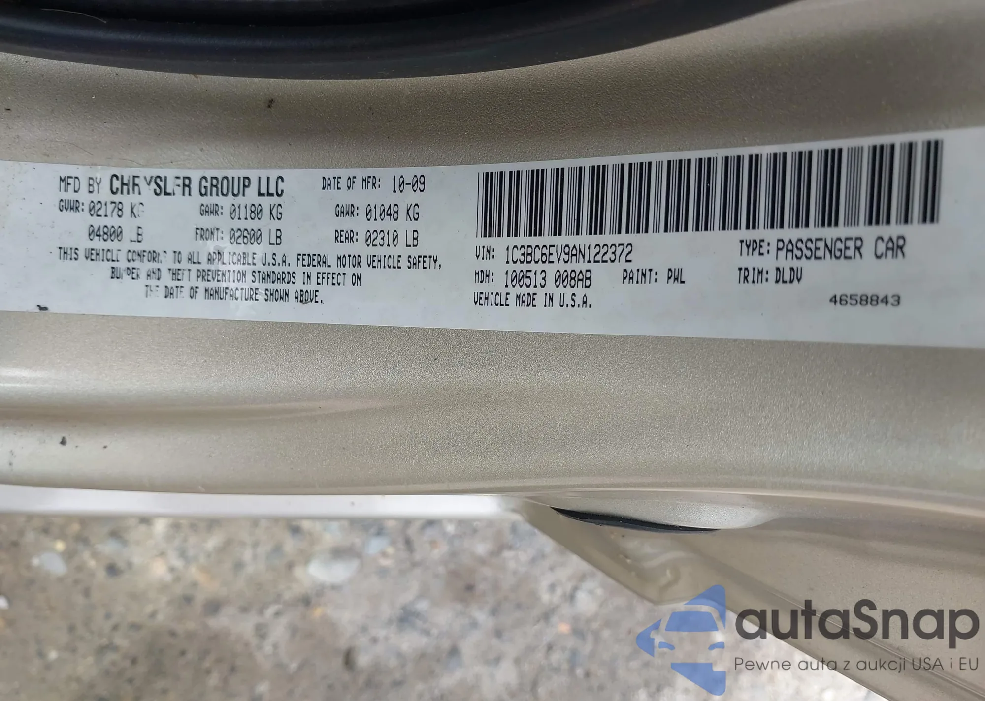 LOT: 42382181 VIN: 1C3BC6EV9AN122372