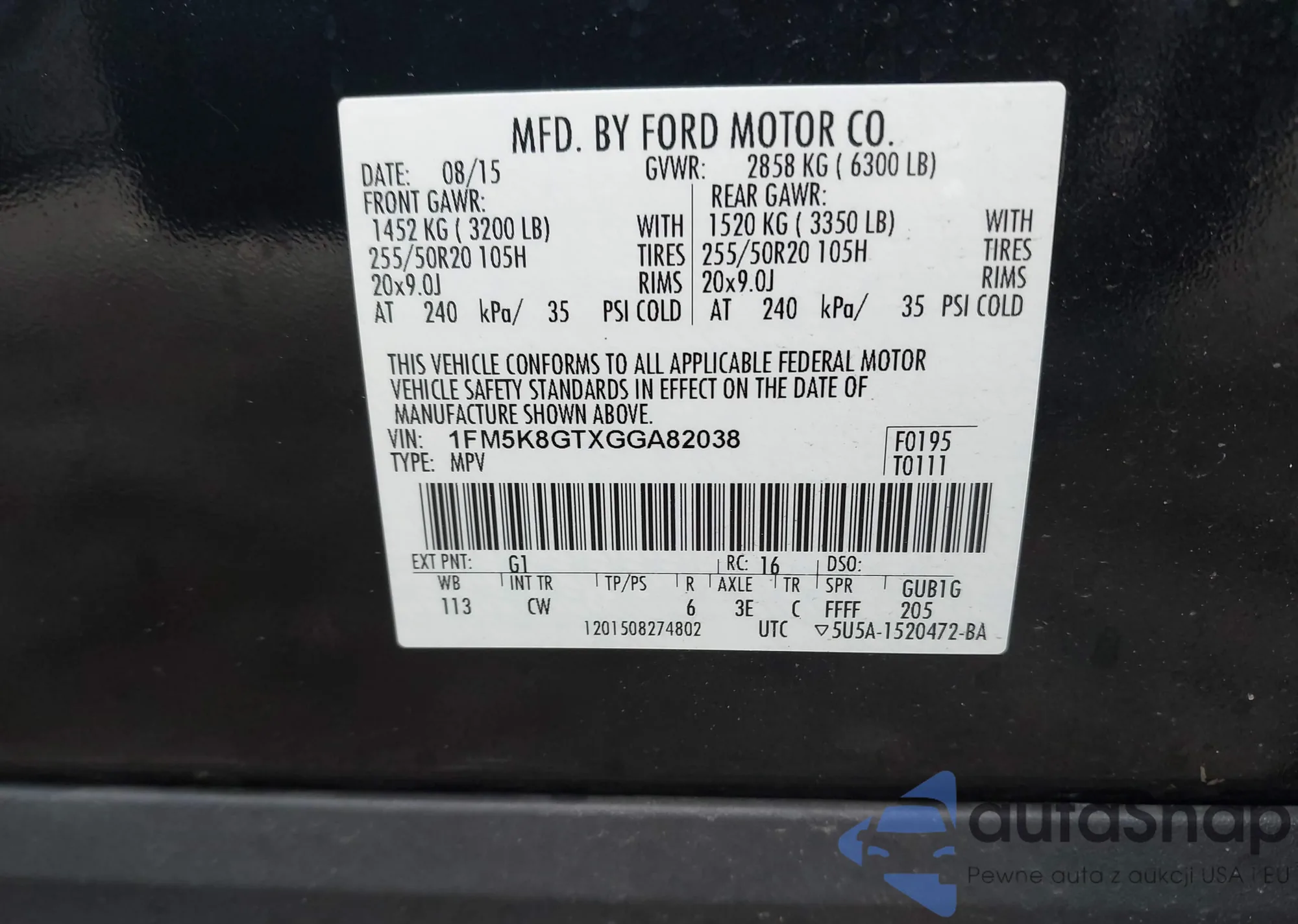 • VIN 1FM5K8GTXGGA82038