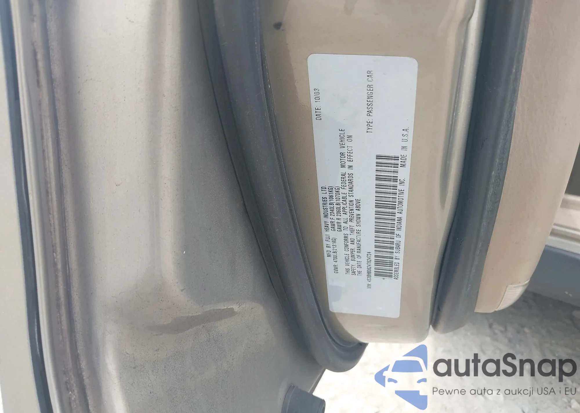 LOT: 42502220 VIN: 4S3BH806247624724