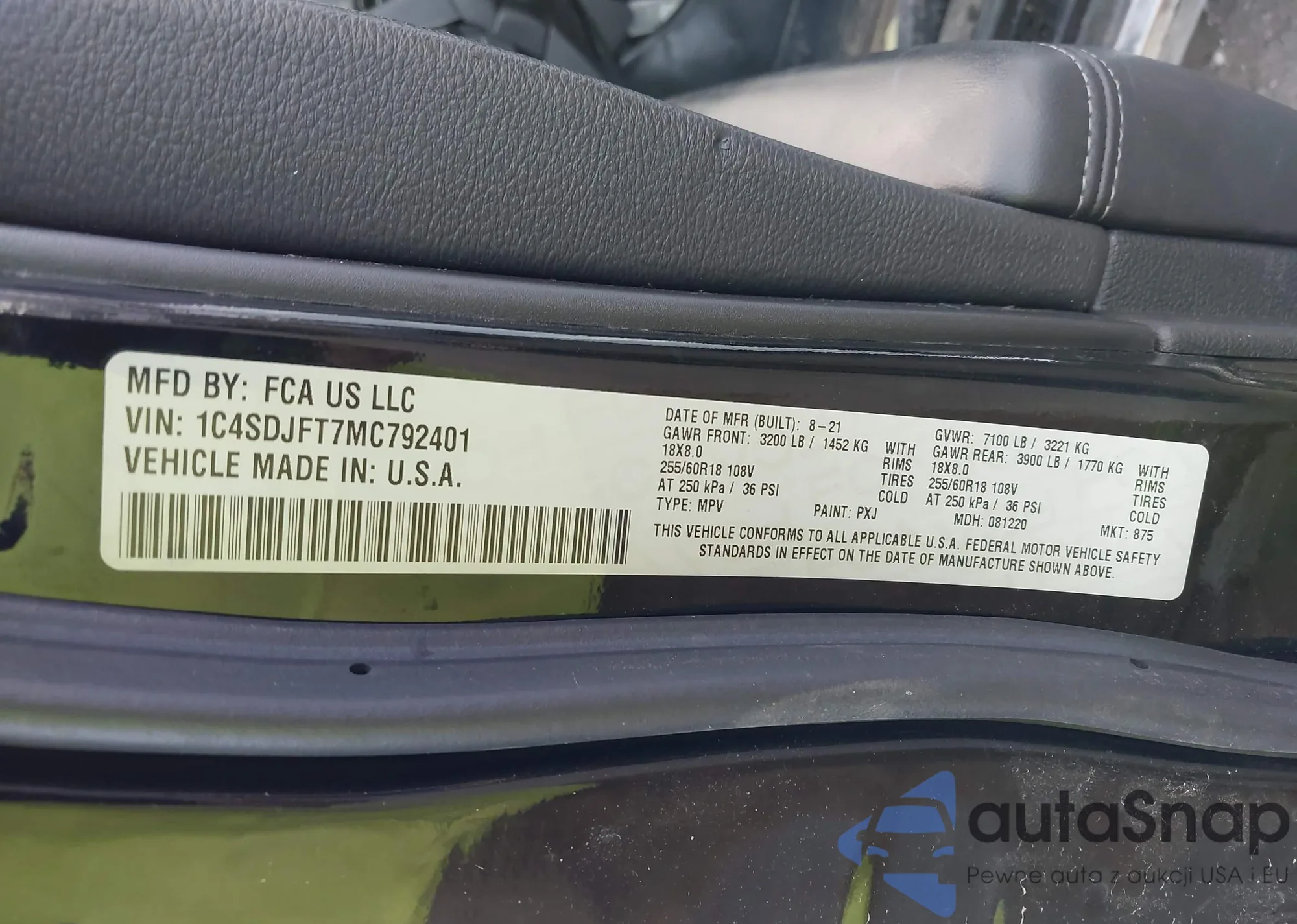 • VIN 1C4SDJFT7MC792401