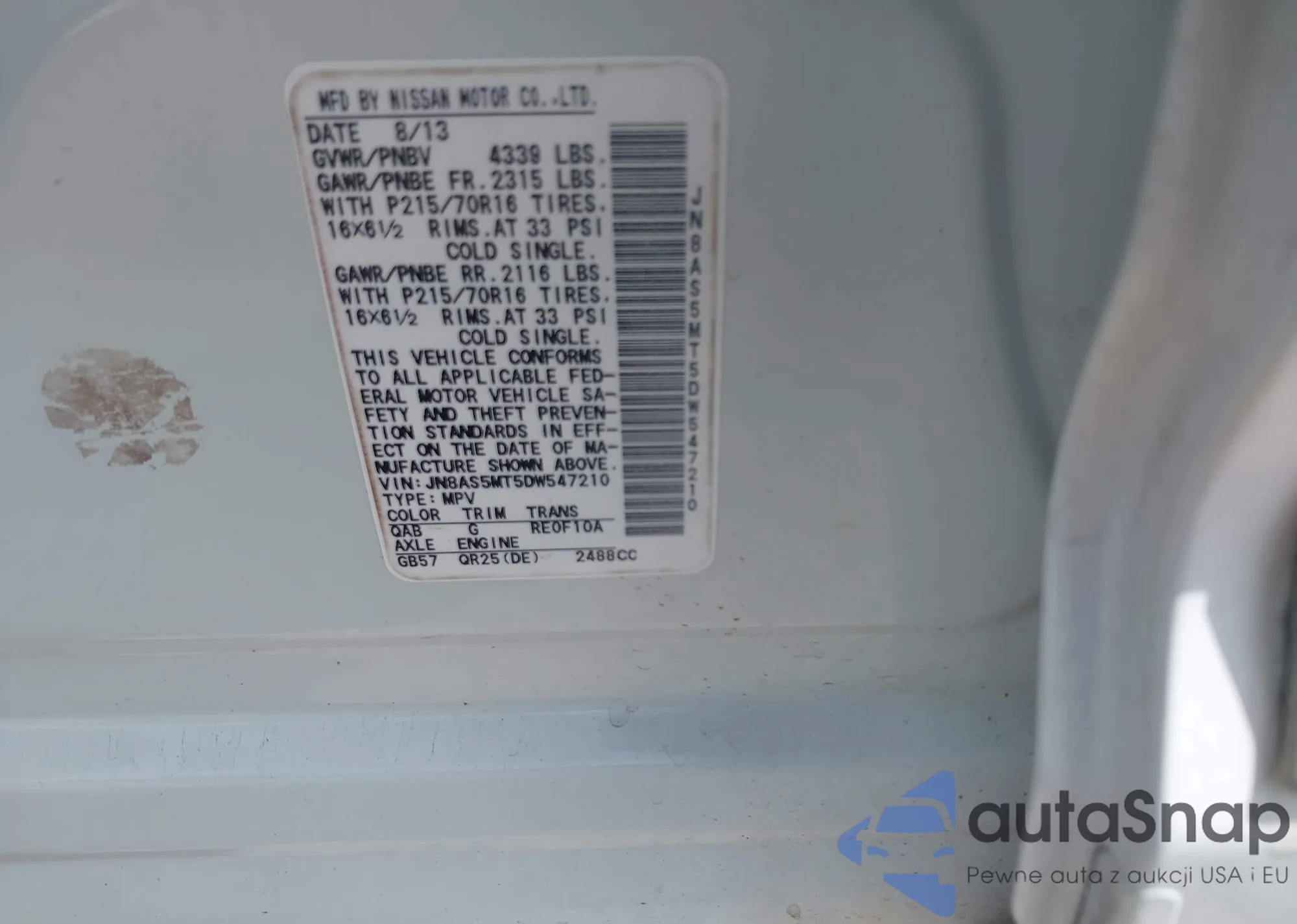 LOT: 42368359 VIN: JHLRE38708C018328