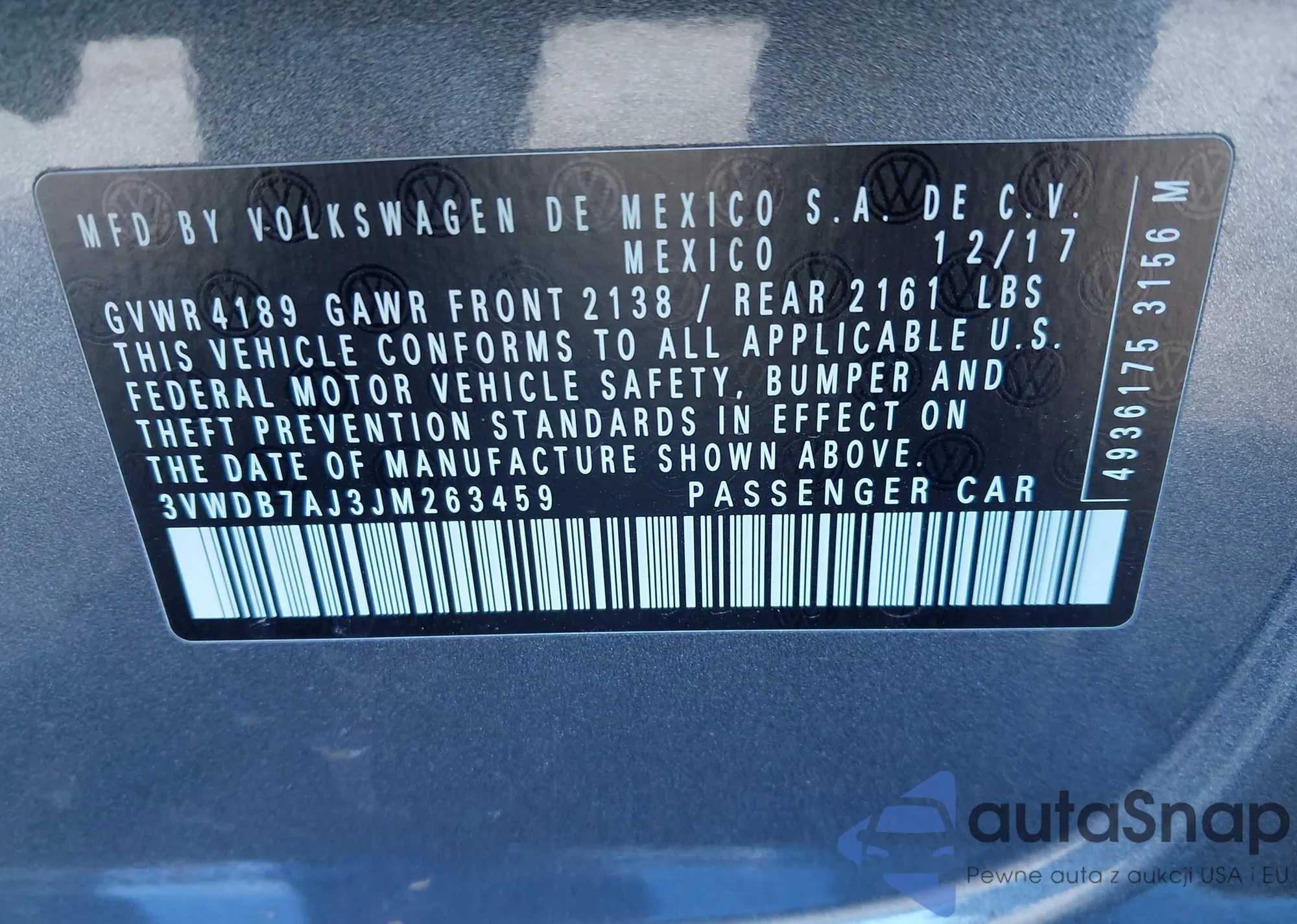 • VIN 3VWDB7AJ3JM263459