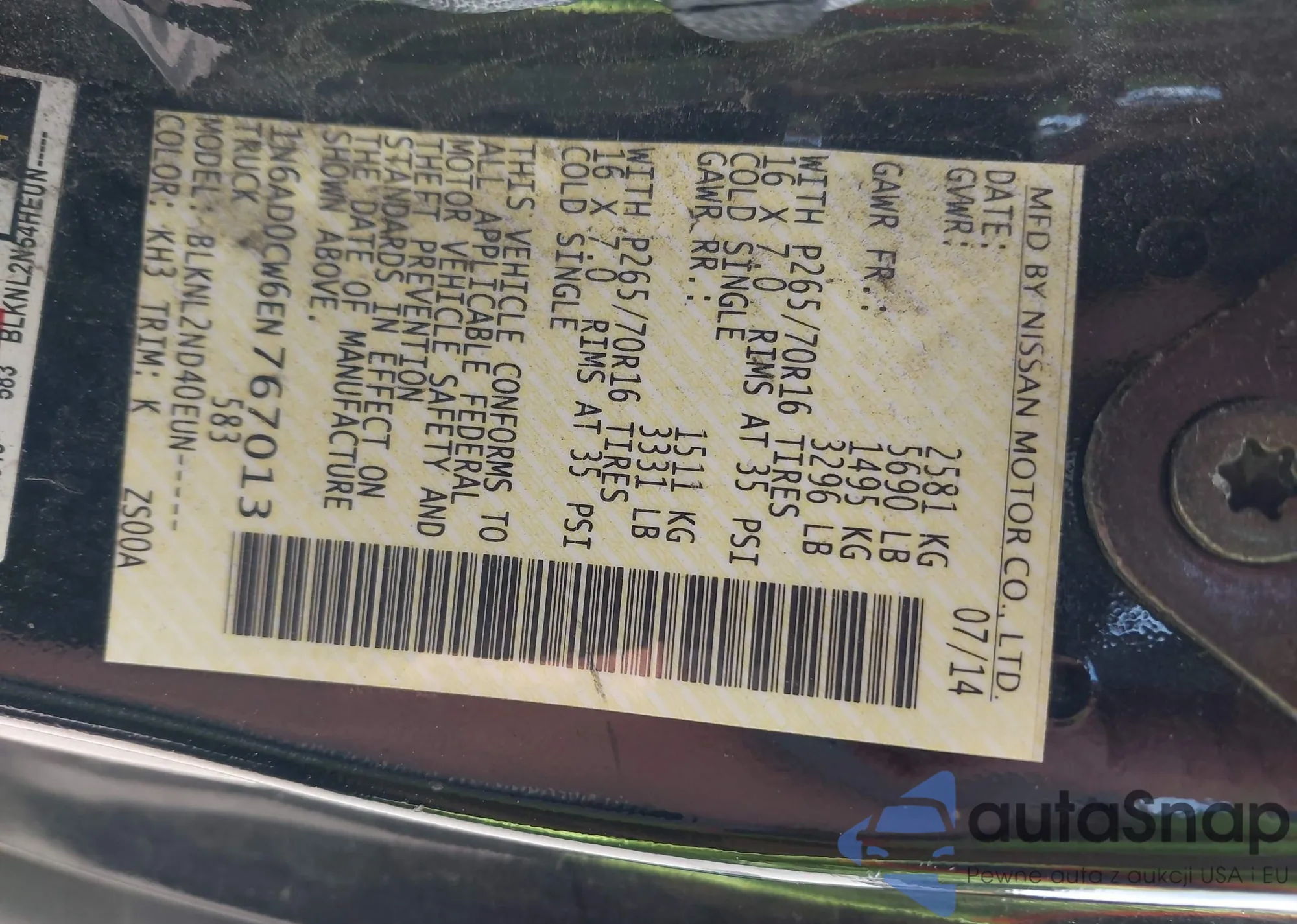 • VIN 1N6AD0CW6EN767013