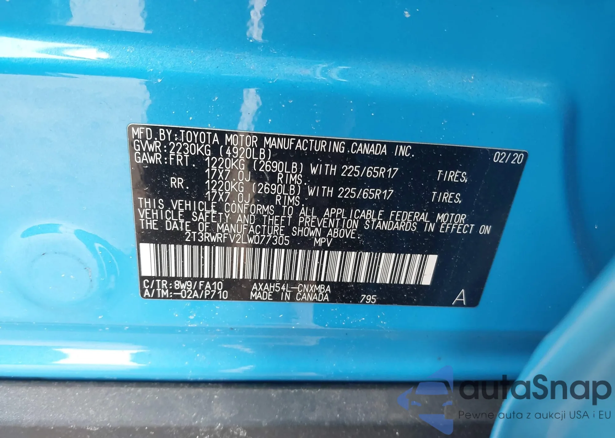 LOT: 41611806 VIN: 2T3RWRFV2LW077305