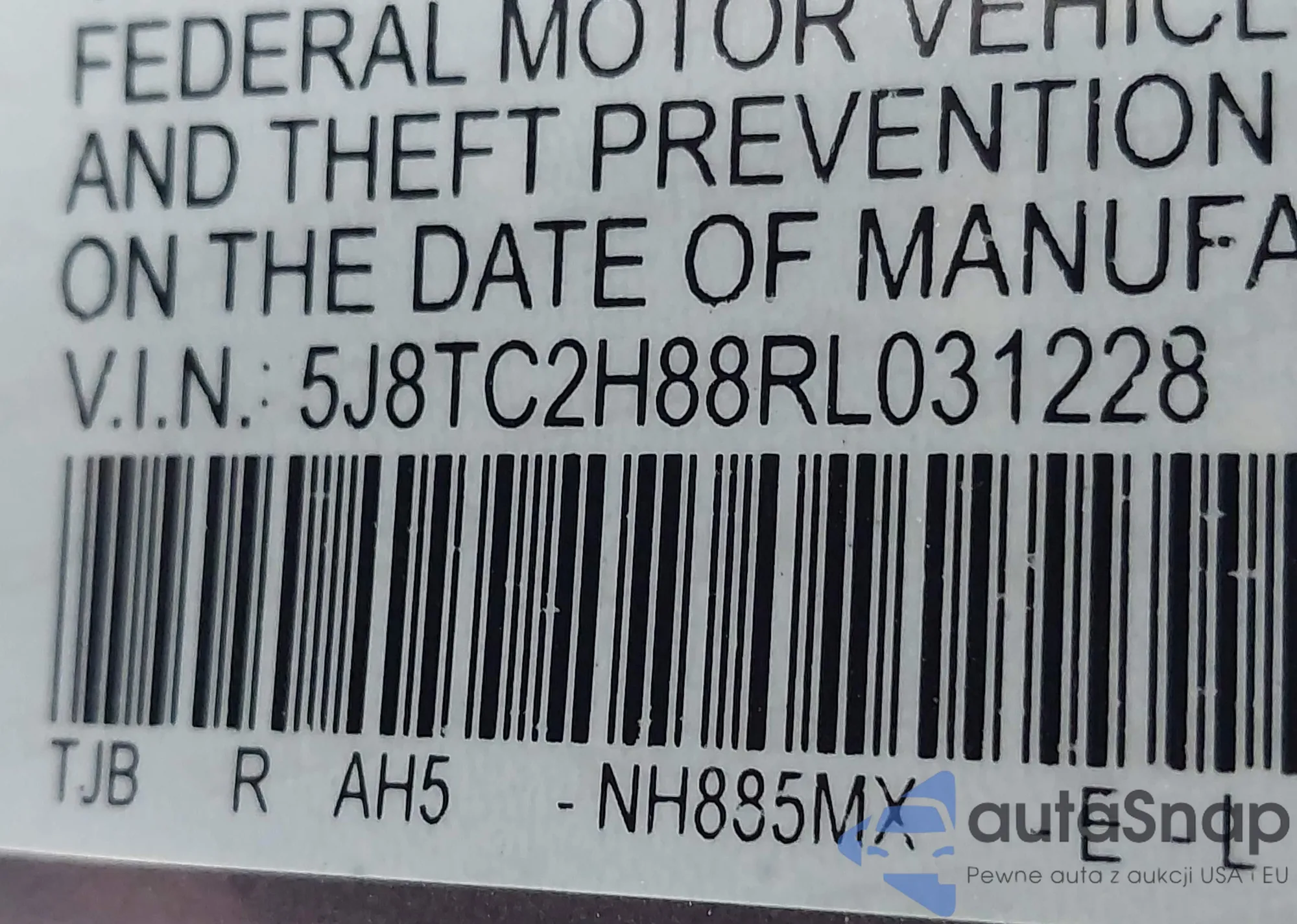 • VIN 5J8TC2H88RL031228