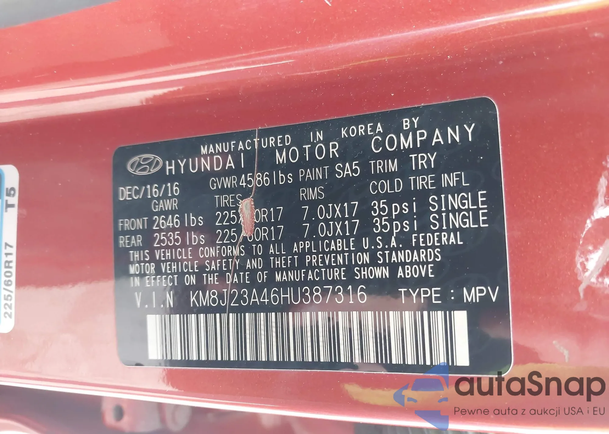 • VIN KM8J23A46HU387316